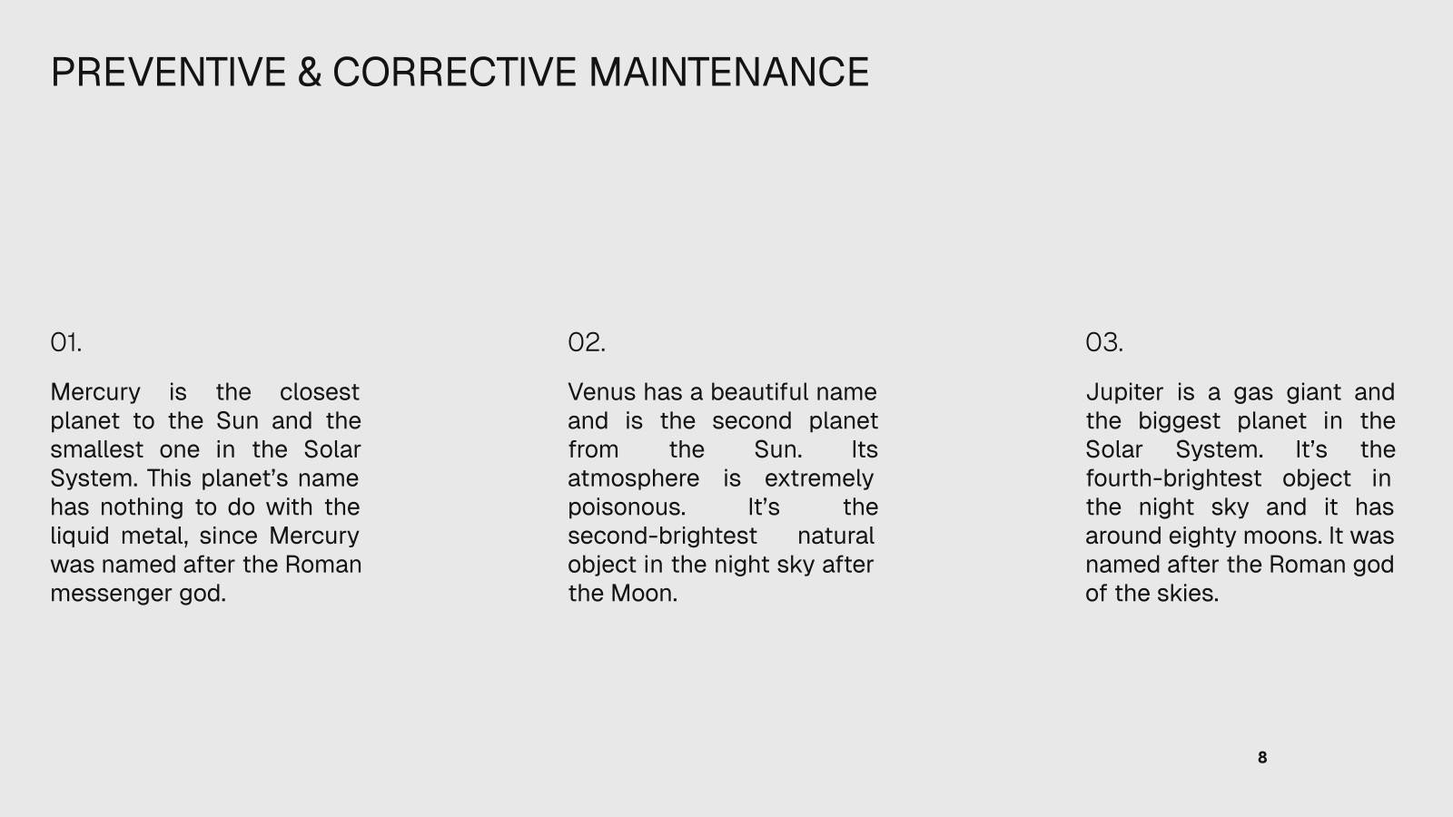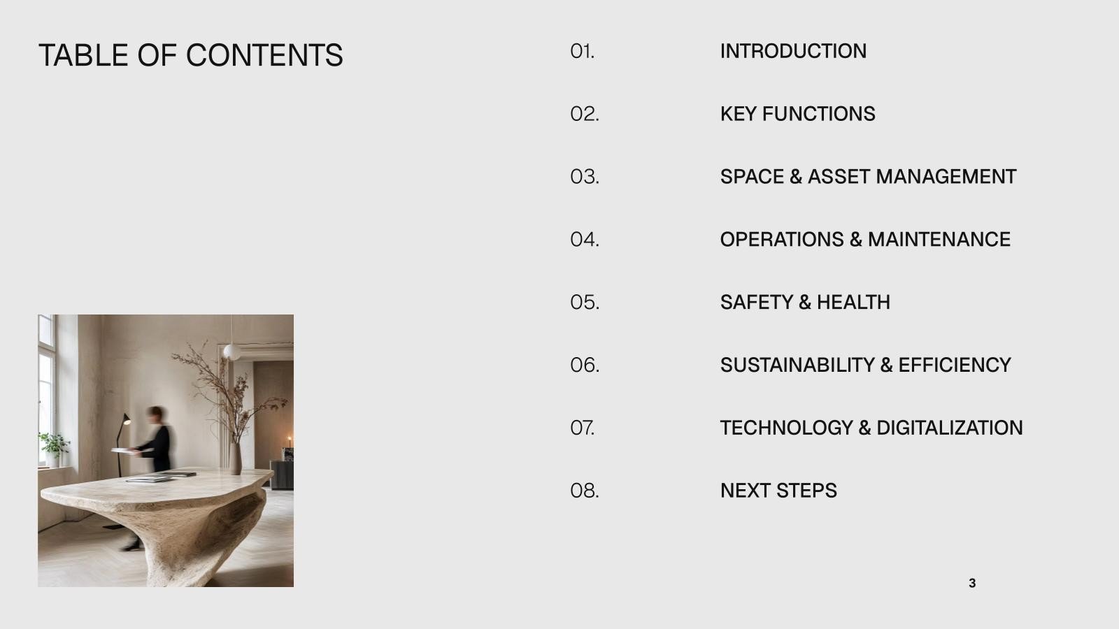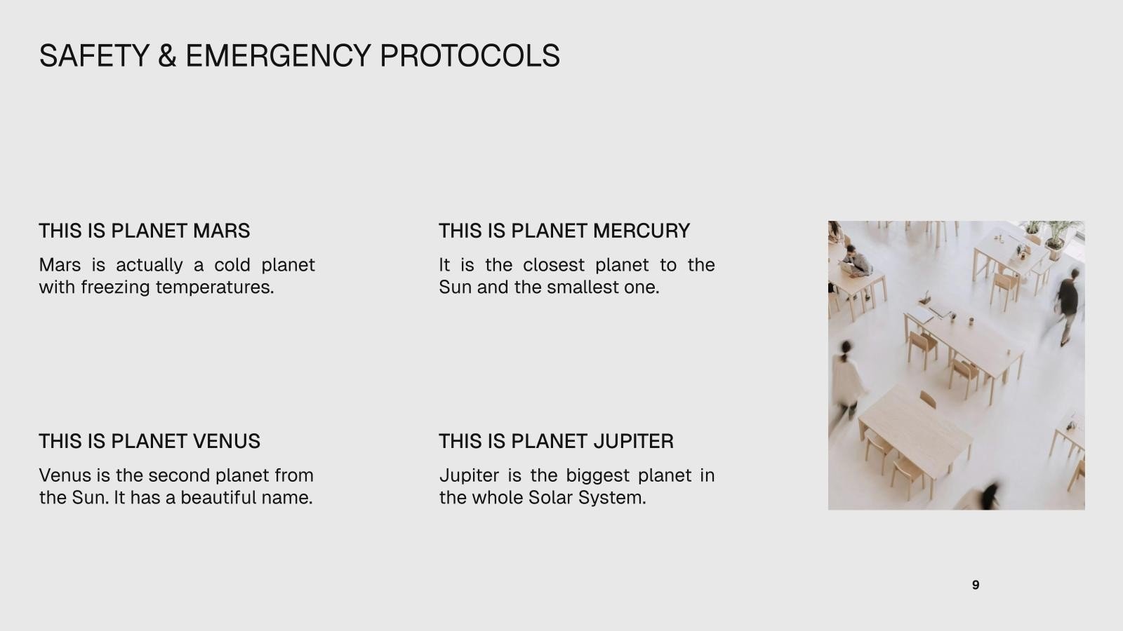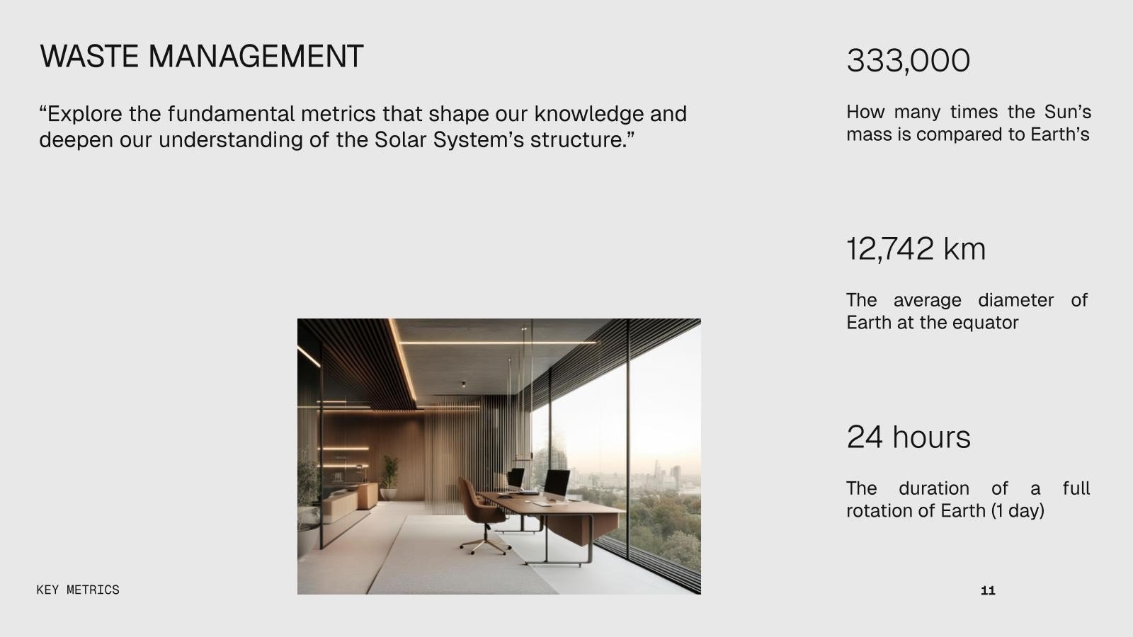 “下载设施管理演示文稿,用于PowerPoint或Google幻灯片。准确有效地传达你的商业计划是任何成功创业的基石。该模板允许您精准指出运营的关键要素,同时受众也会欣赏清晰简洁的呈现,消除潜在的误解。这不仅仅是内容,我们的设计同样吸引目光!你的商业计划肯定会给你留下积极印象。”