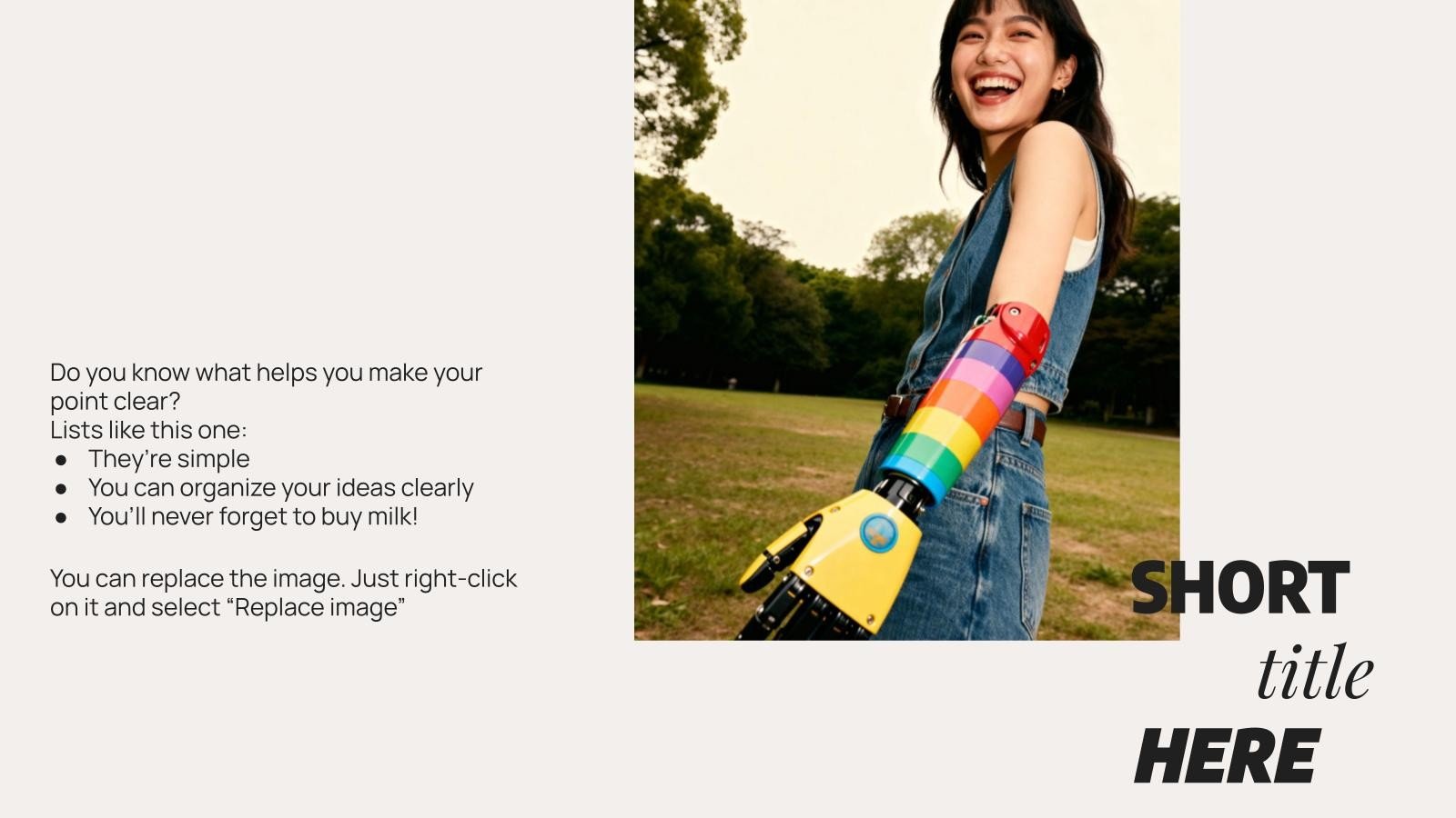 “下载世界残疾人日演示文稿,支持PowerPoint或Google幻灯片,开始用创意和原创的设计打动你的听众。像这里这样的幻灯片模板,可以通过不同的图形资源,以清晰、简洁和直观的方式传达一个概念、想法或主题。你需要谈论一个具体话题,但你不知道怎么说?试试用像这里这样的演示,百分之百可定制!”