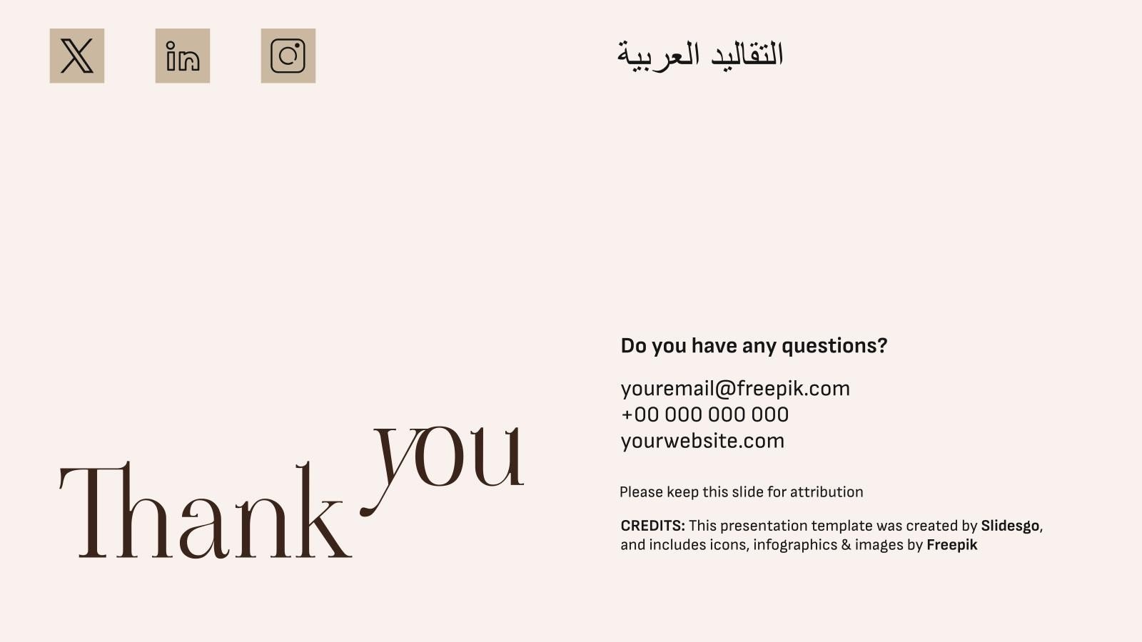 “下载阿拉伯传统演示文稿,支持PowerPoint或Google幻灯片,开始用创意和原创的设计打动你的听众。像这里这样的幻灯片模板,可以通过不同的图形资源,以清晰、简洁和直观的方式传达一个概念、想法或主题。你需要谈论一个具体话题,但你不知道怎么说?试试用像这里这样的演示,百分之百可定制!”