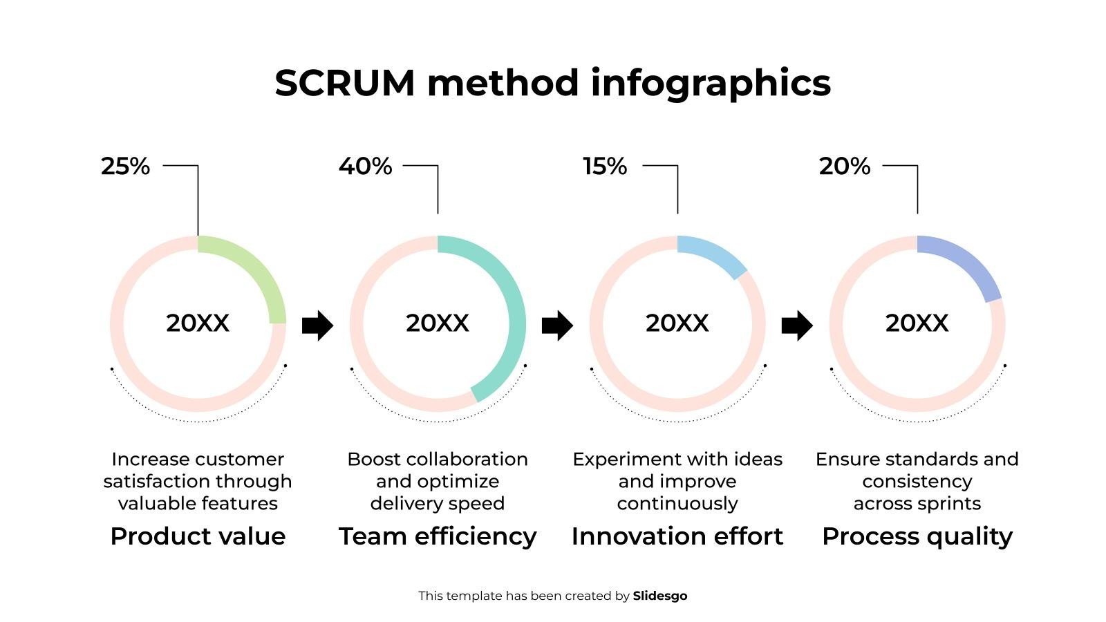 下载适用于 PowerPoint 或 Google 幻灯片的 SCRUM 方法信息图表模板,以充分利用信息图表。无论您是想在表格中组织您的业务预算,还是想示意性地分析您过去一年的销售额,这套信息图表资源都将有很大帮助。立即开始使用信息图表,将您的业务或营销演示提升到一个新的水平。