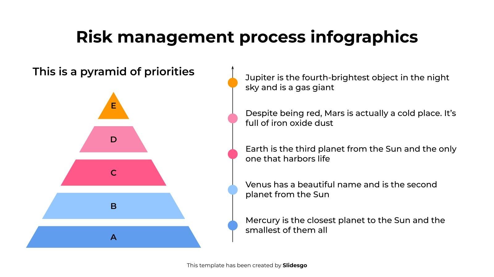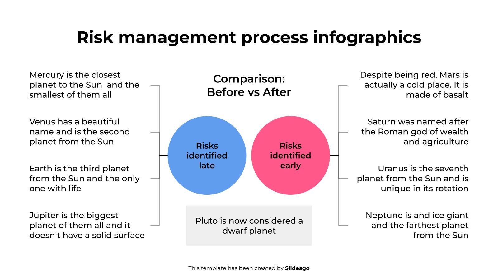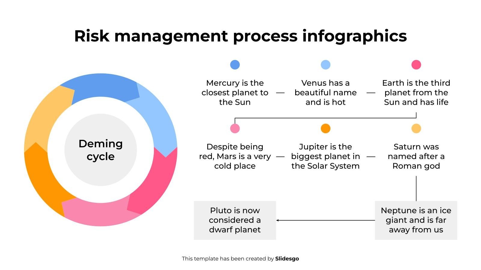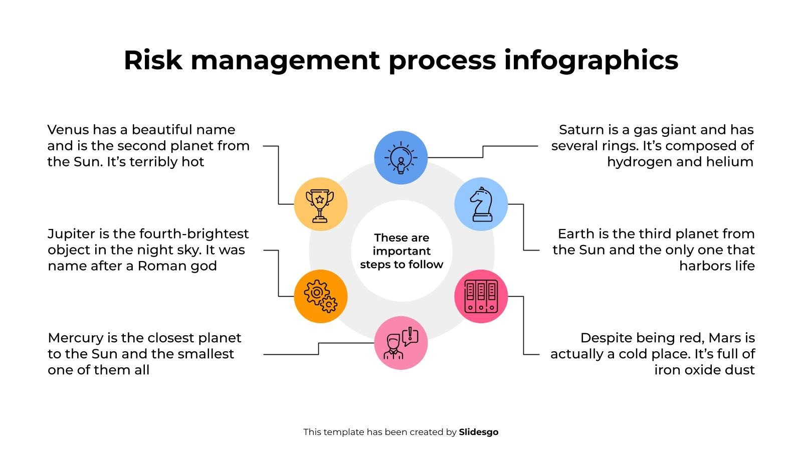 下载适用于 PowerPoint 或 Google 幻灯片的风险管理流程信息图表模板,以充分利用信息图表。无论您是想在表格中组织您的业务预算,还是想示意性地分析您过去一年的销售额,这套信息图表资源都将有很大帮助。立即开始使用信息图表,将您的业务或营销演示提升到一个新的水平。
