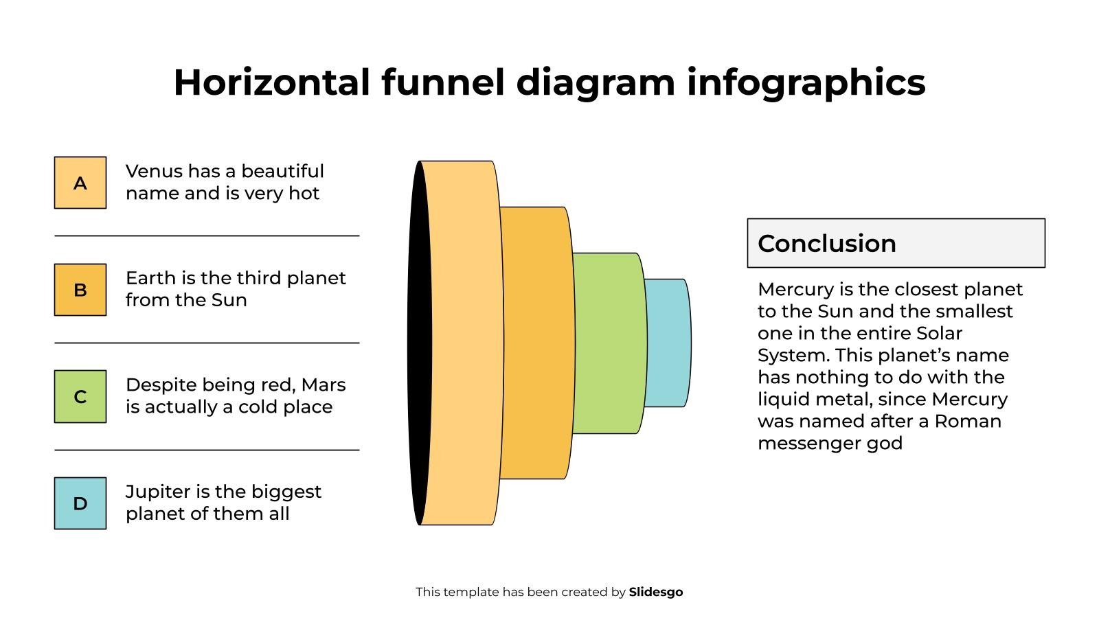 下载适用于 PowerPoint 或 Google 幻灯片的水平漏斗图信息图表模板,以充分利用信息图表。无论您是想在表格中组织您的业务预算,还是想示意性地分析您过去一年的销售额,这套信息图表资源都将有很大帮助。立即开始使用信息图表,将您的业务或营销演示提升到一个新的水平。