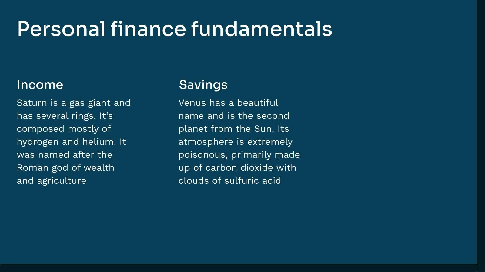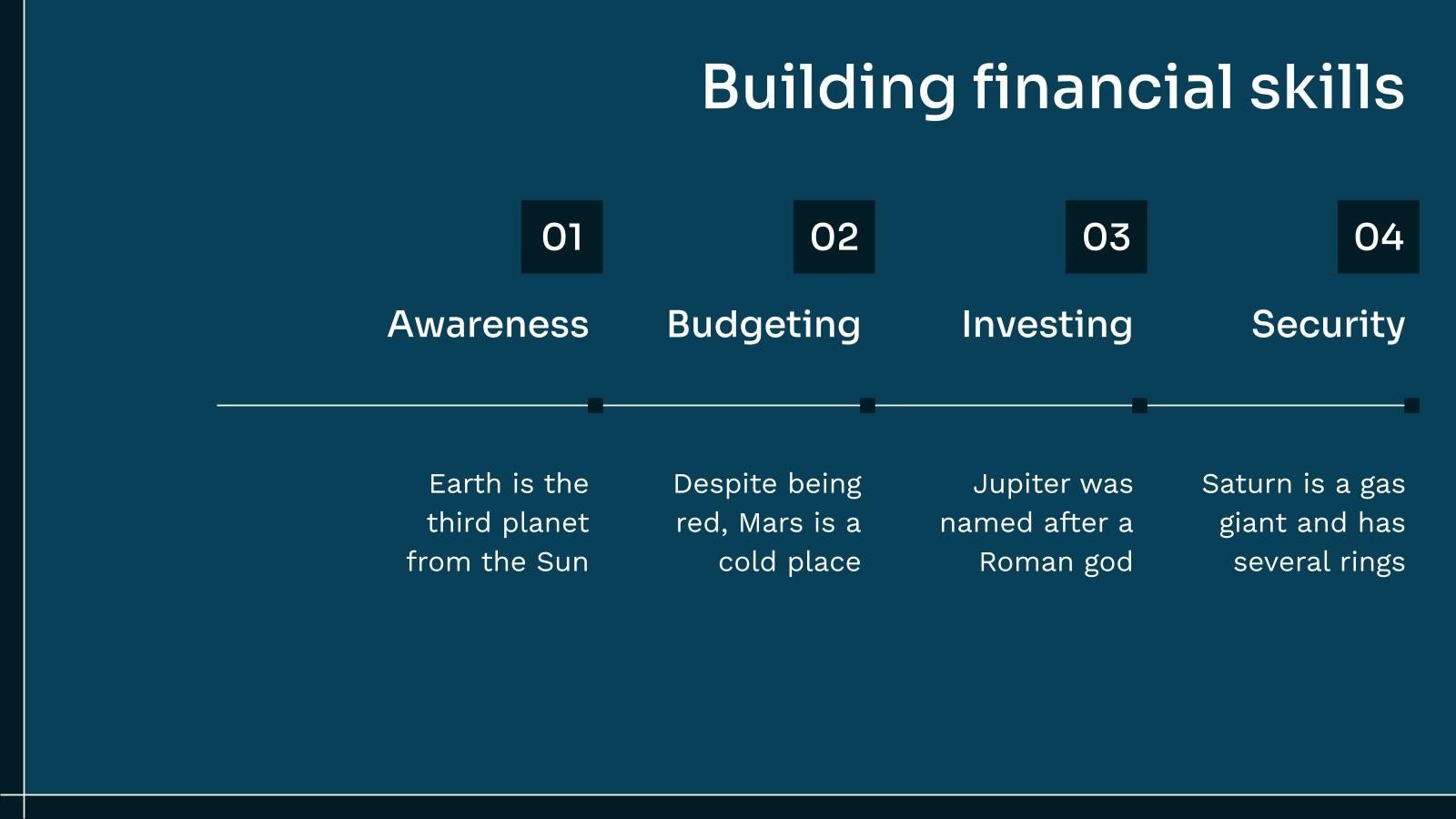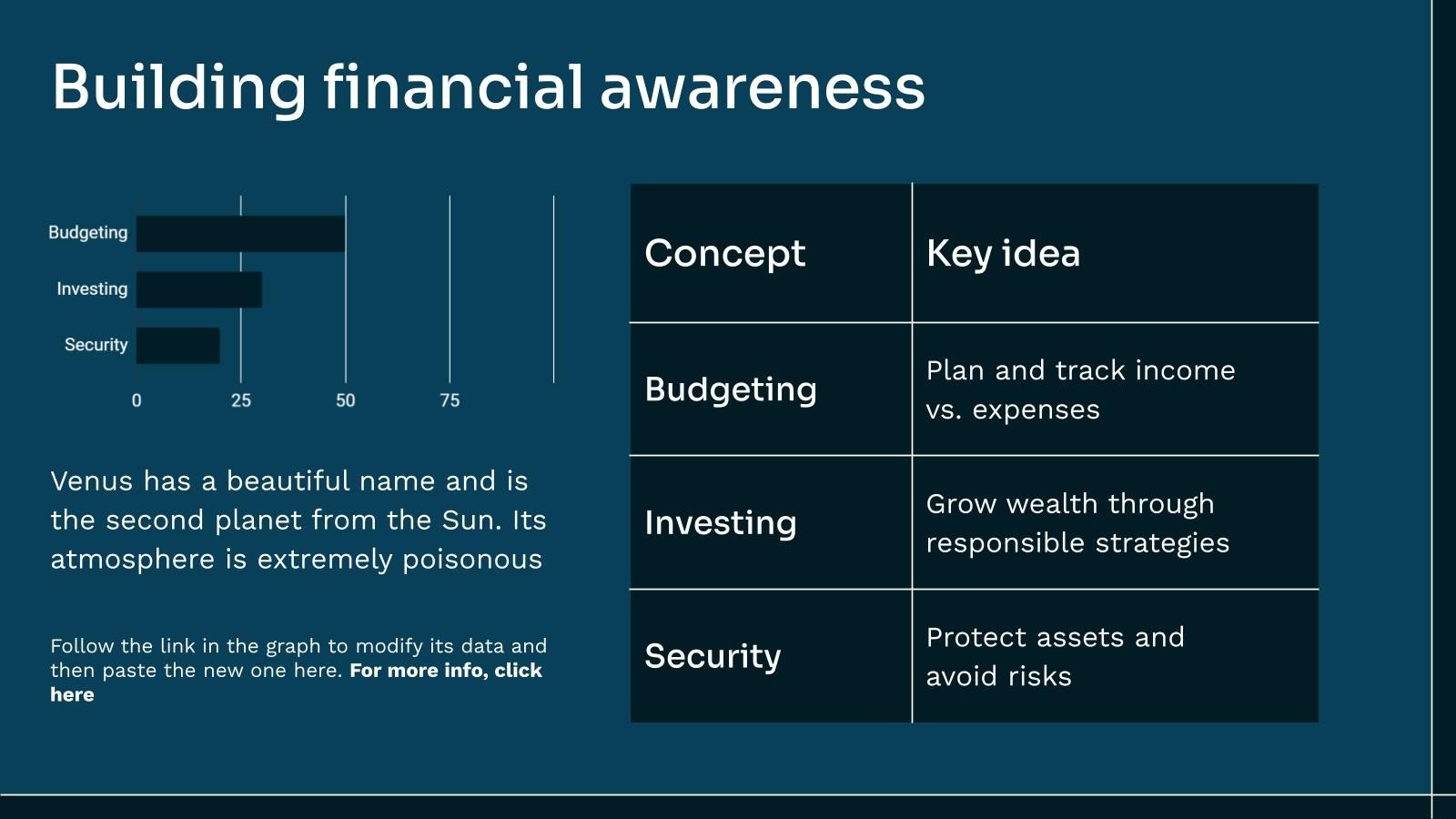 “下载适用于 PowerPoint 或 Google 幻灯片的金融教育演示文稿,开始用创意和原创设计给观众留下深刻印象。像这里这样的 Slidesgo 模板提供了通过使用不同的图形资源以清晰、简洁和直观的方式传达概念、想法或主题的可能性。你需要谈论一个特定的话题,但你不知道该怎么做?尝试使用像这样的演示文稿,100% 可定制!