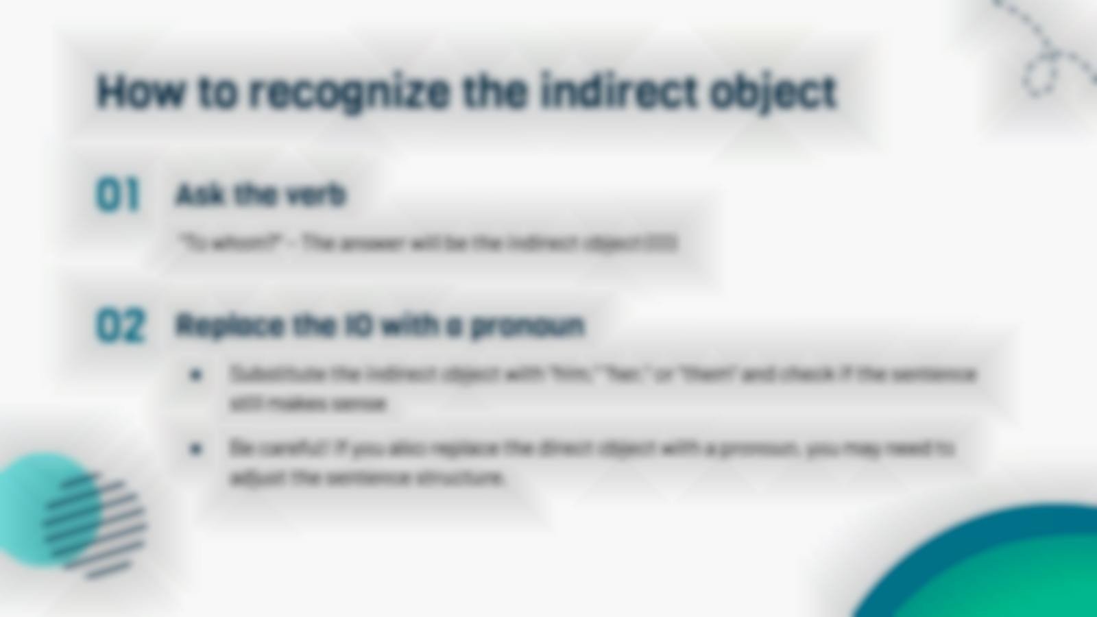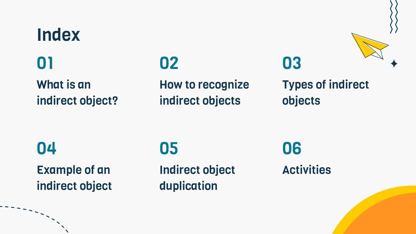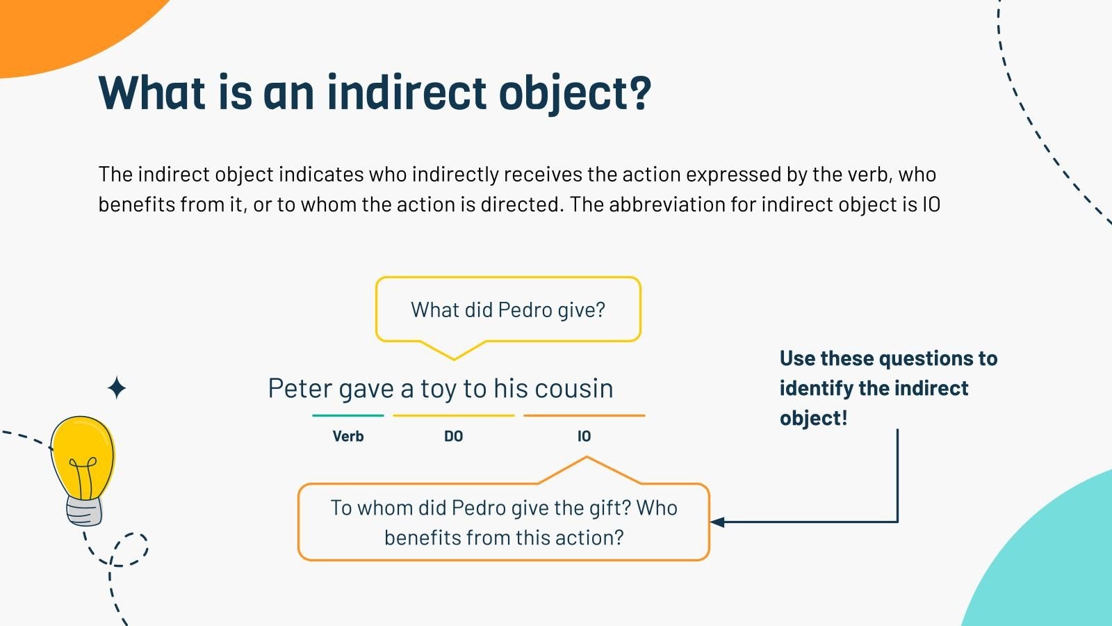 “下载 PowerPoint 或 Google 幻灯片的间接对象演示文稿并充满信心地进行教学。有时,老师需要一点帮助,这并没有错。我们很高兴向您伸出援手!由于 Slidesgo 致力于让每个人都能更好地接受教育,因此我们与教育工作者携手合作。这意味着这些幻灯片上的内容是真实的,当与我们的图形设计专业知识相结合时,您将得到这个现成的课堂演示文稿。它甚至有多种语言版本。不是很好吗?
