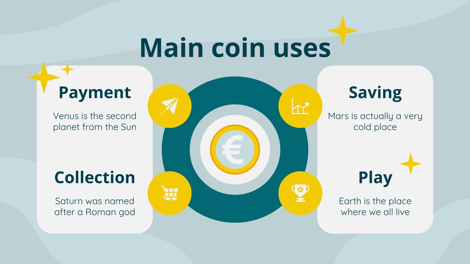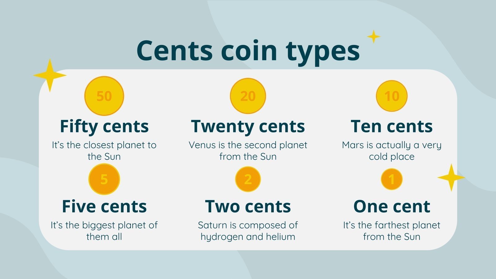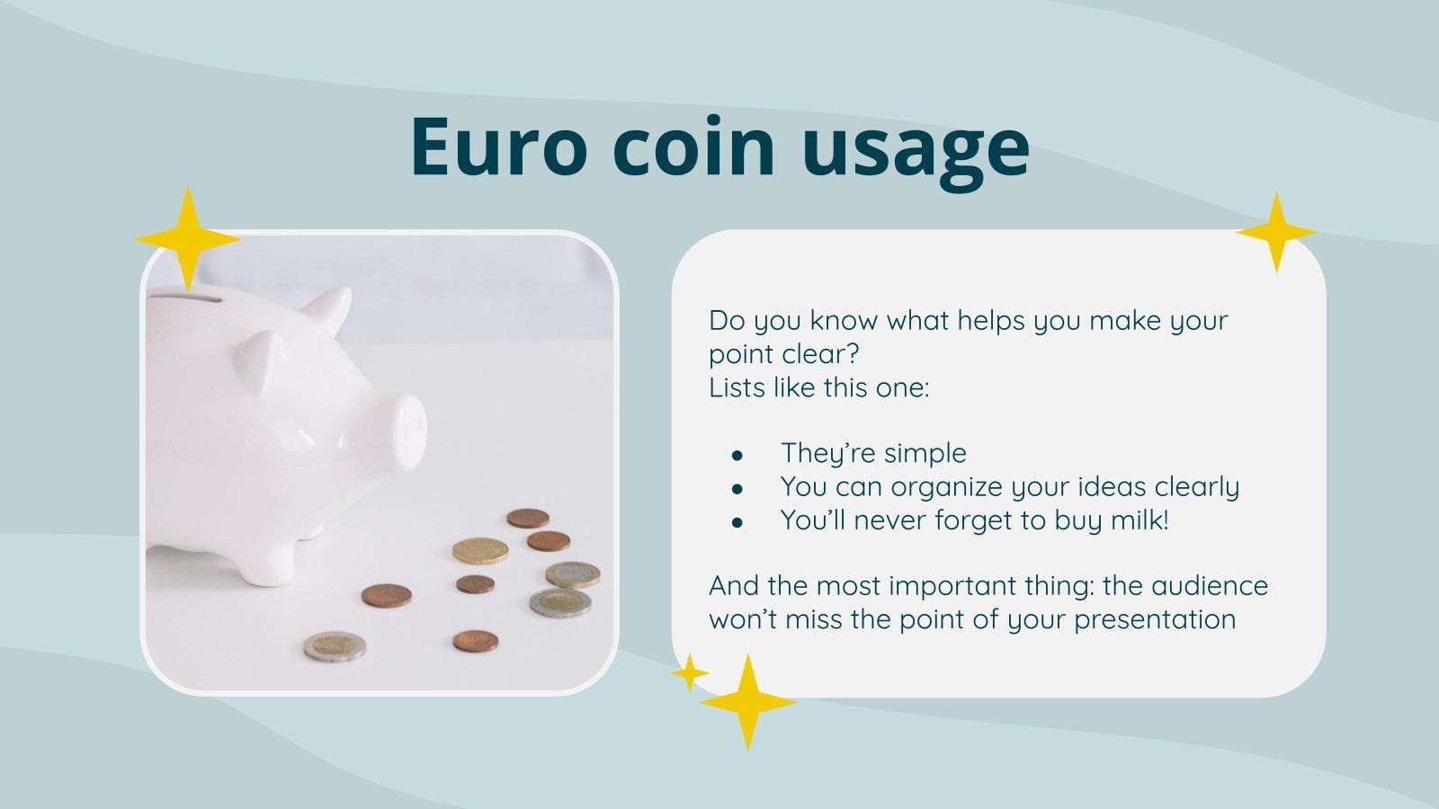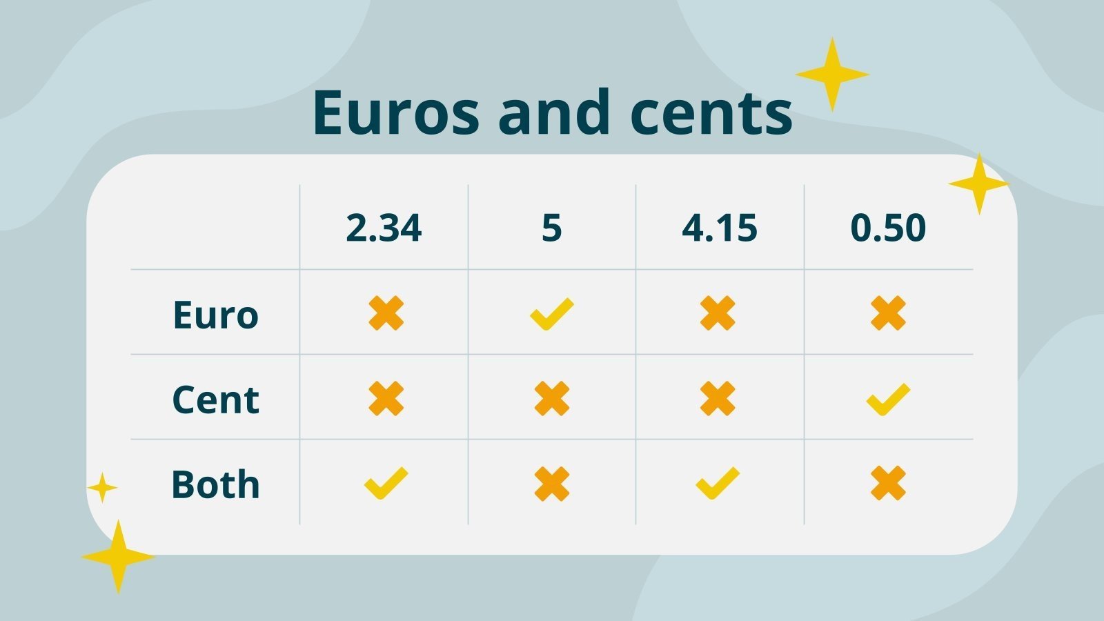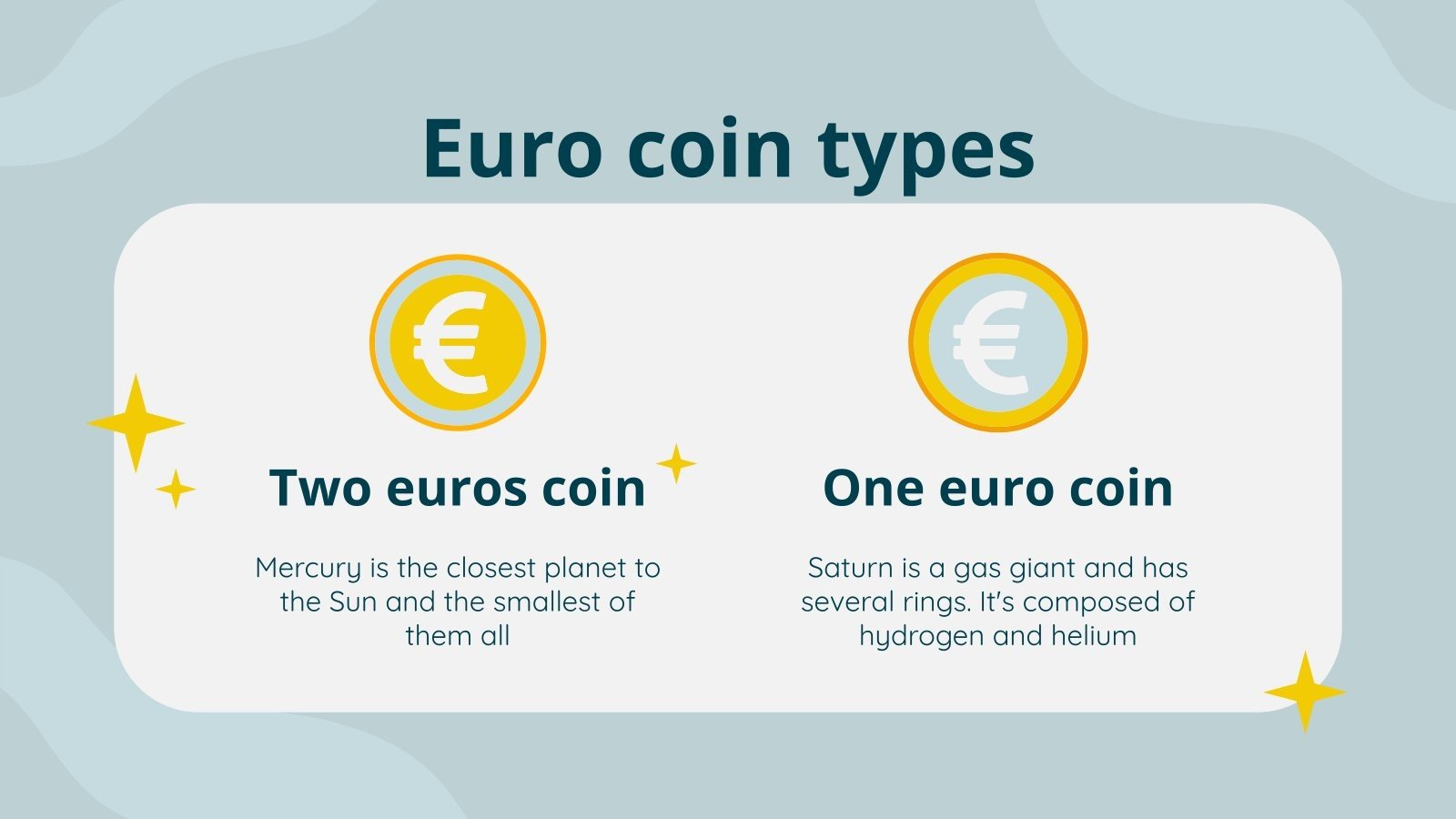 “下载适用于 PowerPoint 或 Google 幻灯片的小学数学科目:欧元硬币识别演示文稿,并轻松编辑它以适合您自己的课程计划!这款引人注目的设计专为小学教育而设计,具有引人入胜的图形和适合年龄的字体;吸引学生注意力并使学习体验更加愉快和刺激的元素。通过这个可编辑的 Google 幻灯片主题和 PowerPoint 模板为您的课程提供有凝聚力的视觉识别,以营造一种熟悉感和组织感!