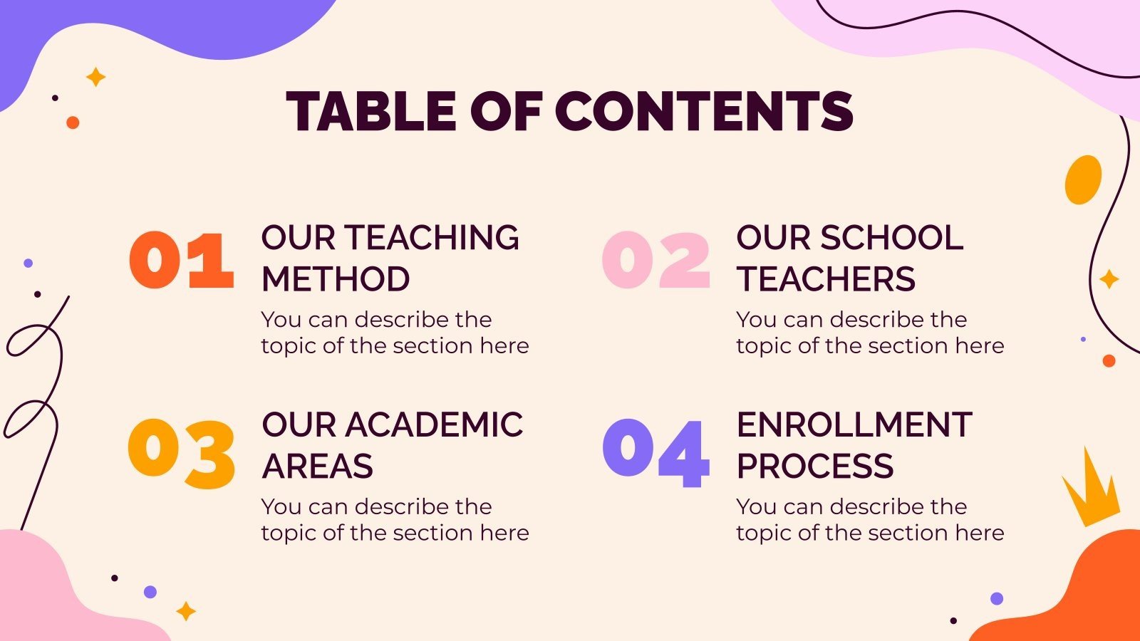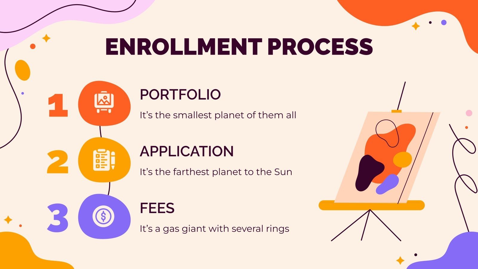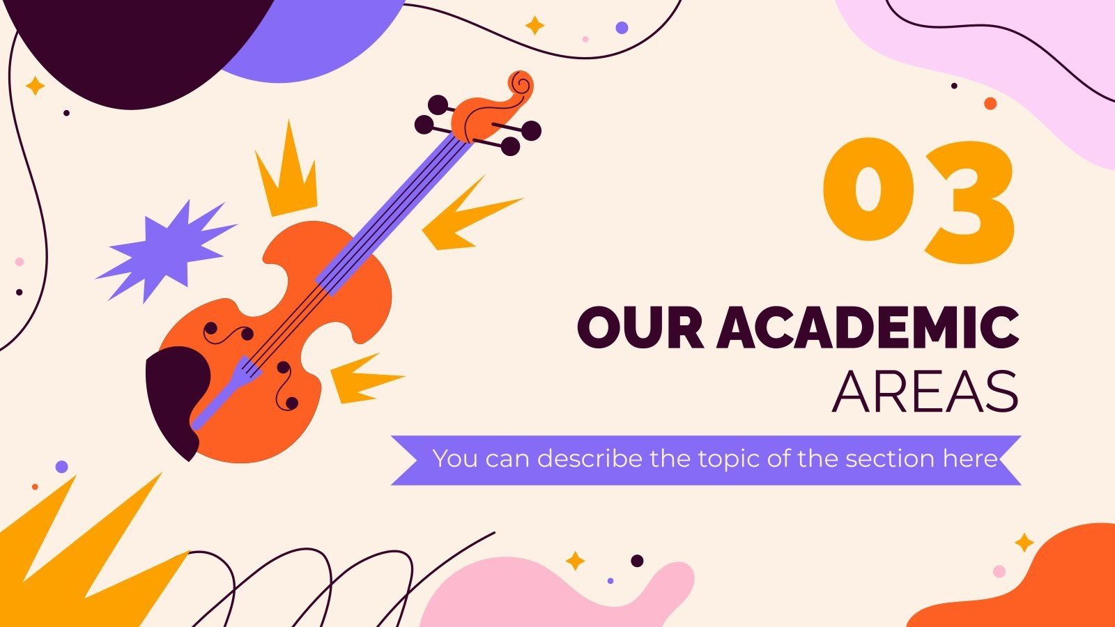“下载 PowerPoint 或 Google 幻灯片的酷风格艺术学院演示文稿。您是否正在寻找一种方法让您的学校学院在竞争中脱颖而出?该模板旨在展示您中心的所有精彩方面。凭借完美的幻灯片,您可以轻松添加有关您的教师、学科和学位的信息,甚至突出显示您的学校比其他学校更好的地方,它是宣传您的机构的宝贵工具。不要满足于一个容易被遗忘的演示文稿——让这个模板帮助您发表声明并从其他人中脱颖而出。