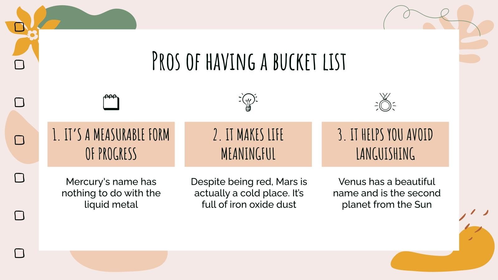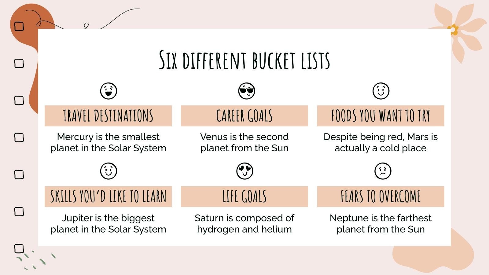 “下载适用于 PowerPoint 或 Google 幻灯片的 2025 年遗愿清单迷你主题演示文稿,开始用创意和原创设计给观众留下深刻印象。像这里这样的 Slidesgo 模板提供了通过使用不同的图形资源以清晰、简洁和直观的方式传达概念、想法或主题的可能性。你需要谈论一个特定的话题,但你不知道该怎么做?尝试使用像这样的演示文稿,100% 可定制!
