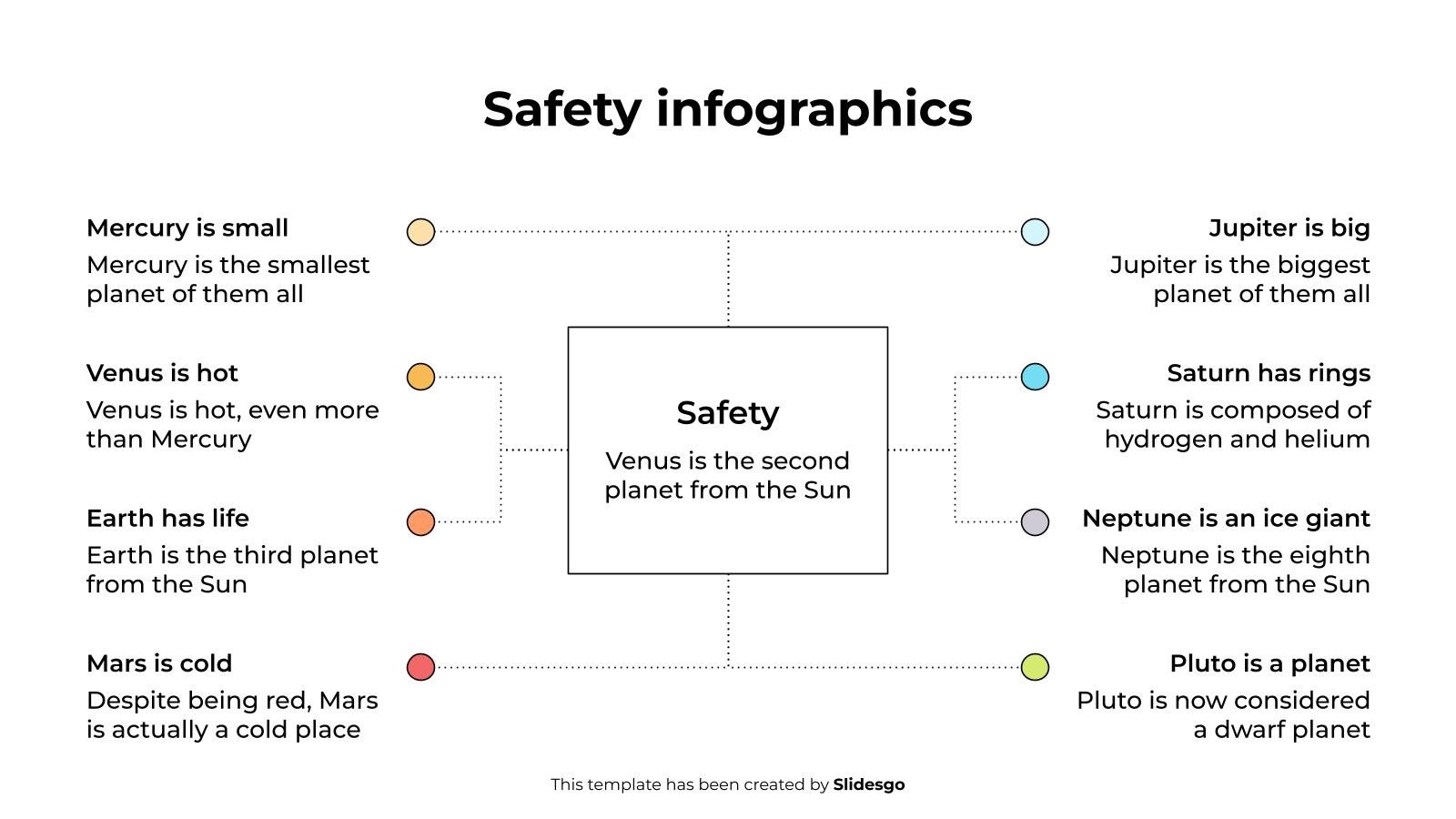 下载适用于 PowerPoint 或 Google 幻灯片的安全信息图表模板,以充分利用信息图表。无论您是想在表格中组织您的业务预算,还是想示意性地分析您过去一年的销售额,这套信息图表资源都将有很大帮助。立即开始使用信息图表,将您的业务或营销演示提升到一个新的水平。