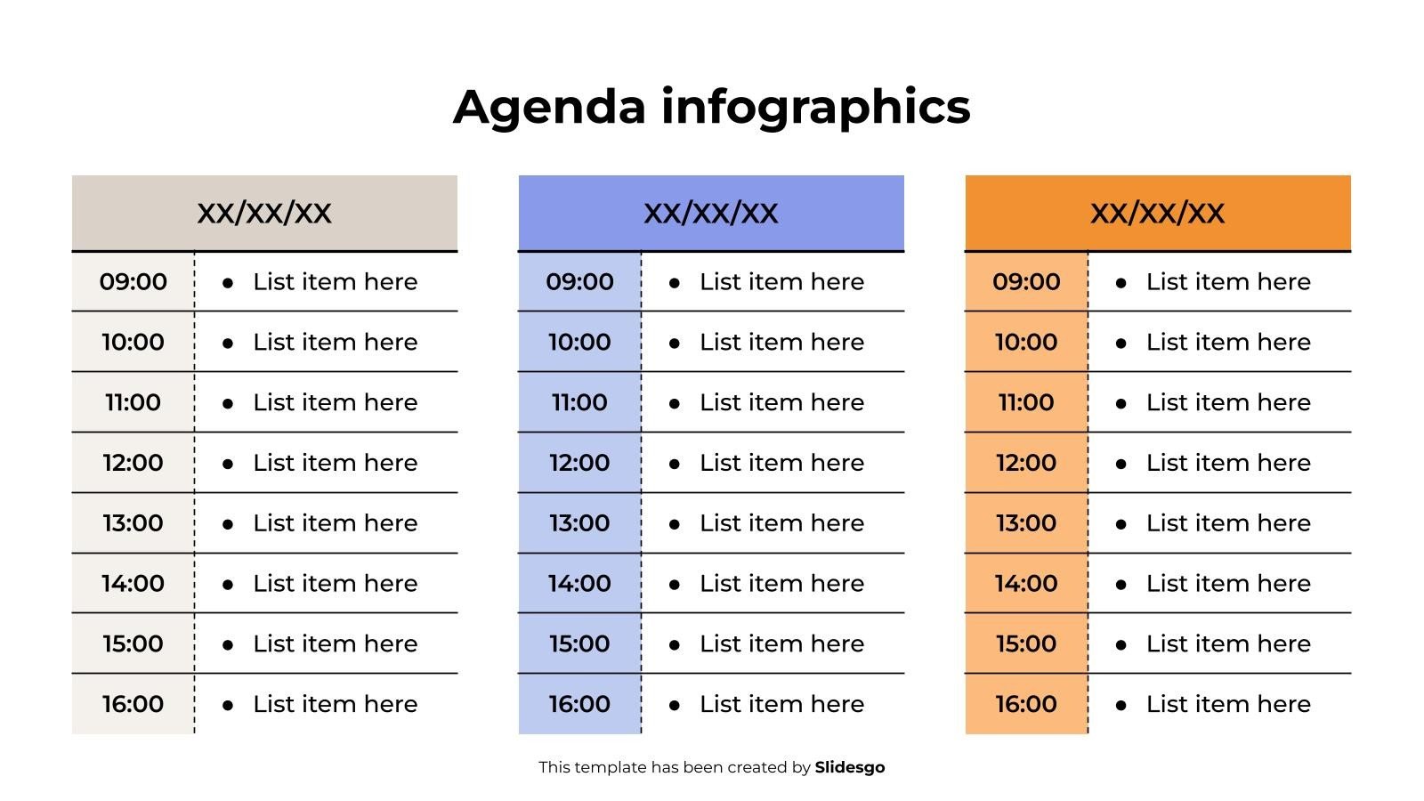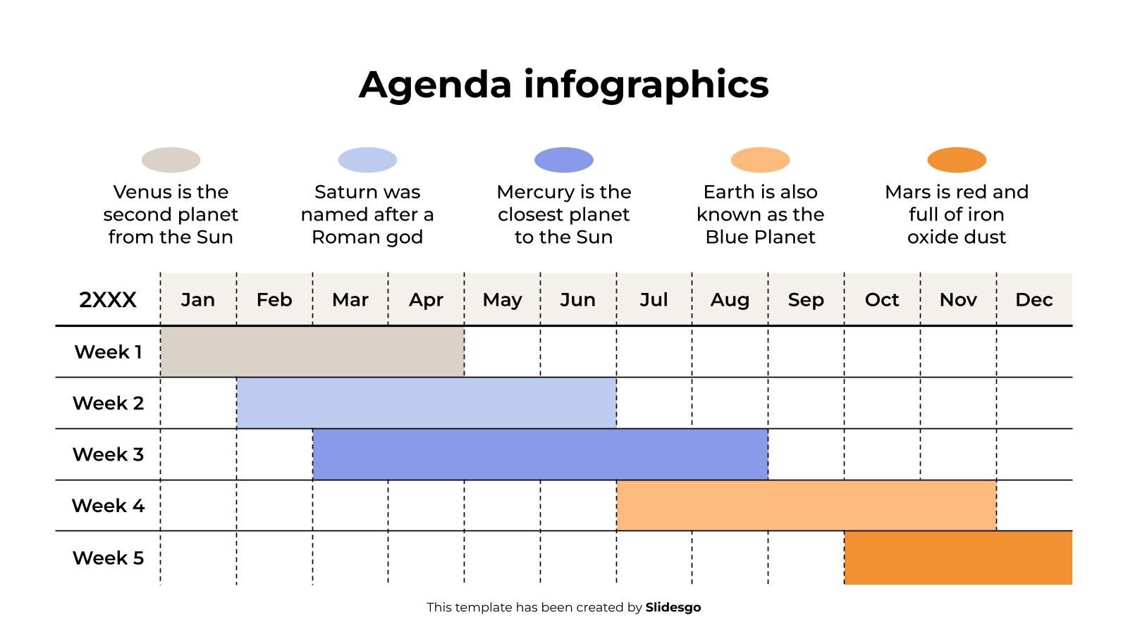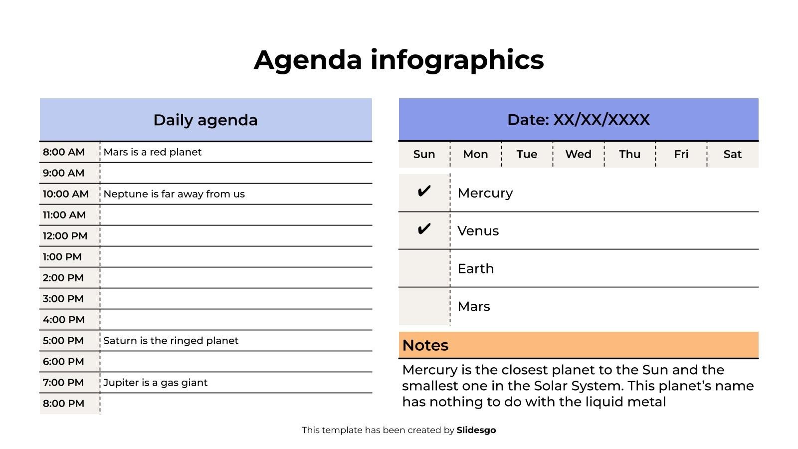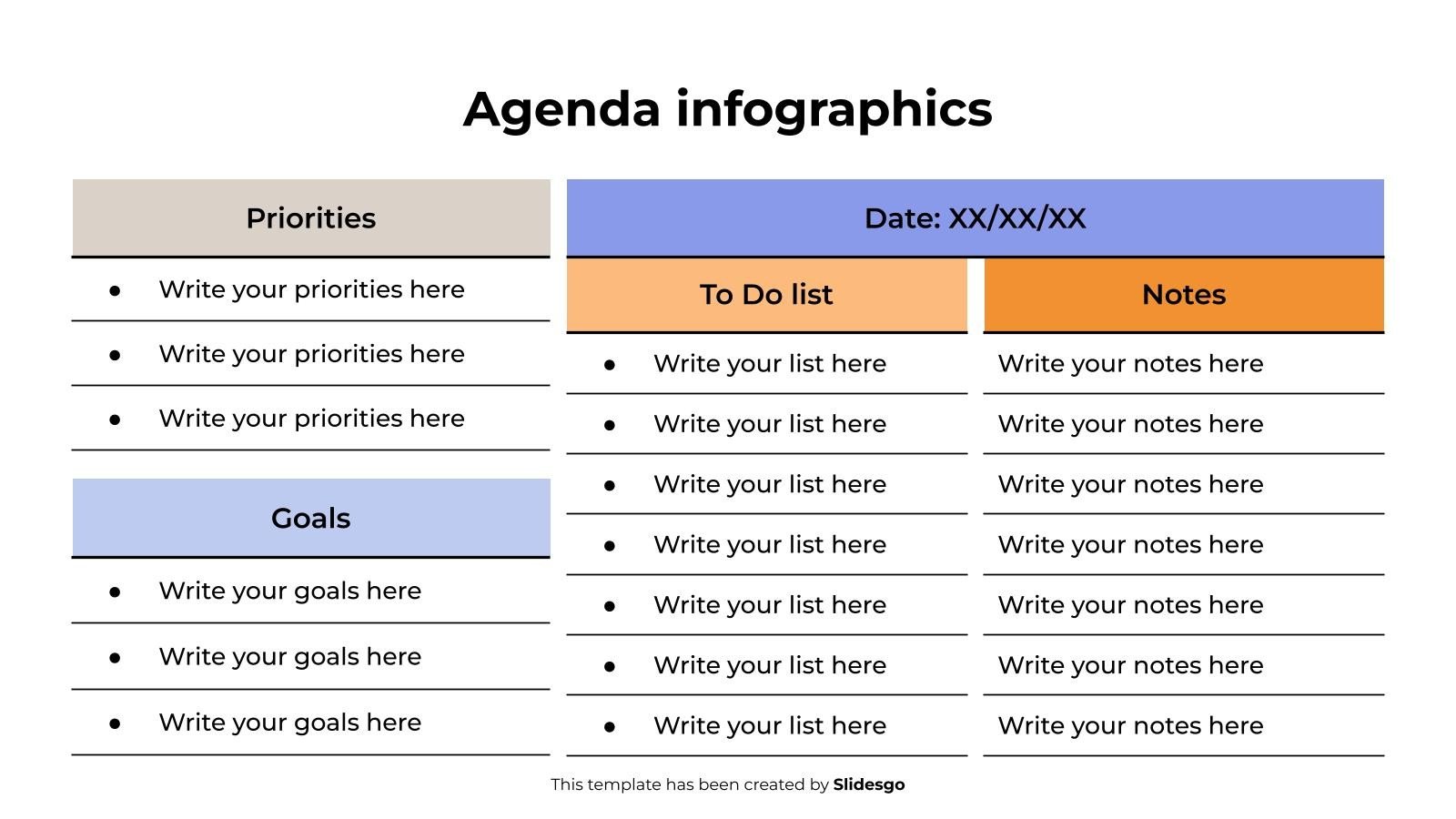 “下载适用于 PowerPoint 或 Google 幻灯片的议程信息图表模板。无论您是组织个人日程、制定学习目标还是制定活动计划,这些模板都能为您提供支持!它们的设计考虑到了创造力和简单性,使规划不仅高效而且有趣。这些模板可轻松定制并与不同平台兼容,如果您喜欢动手作,这些模板非常适合以数字方式组织或打印出来。是时候更明智地计划、组织起来,看看计划是多么容易了!
