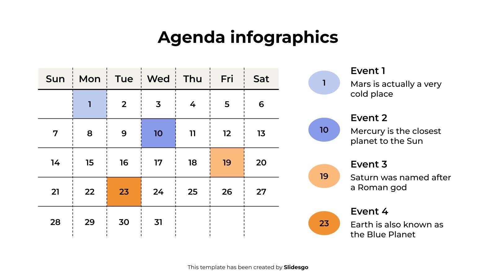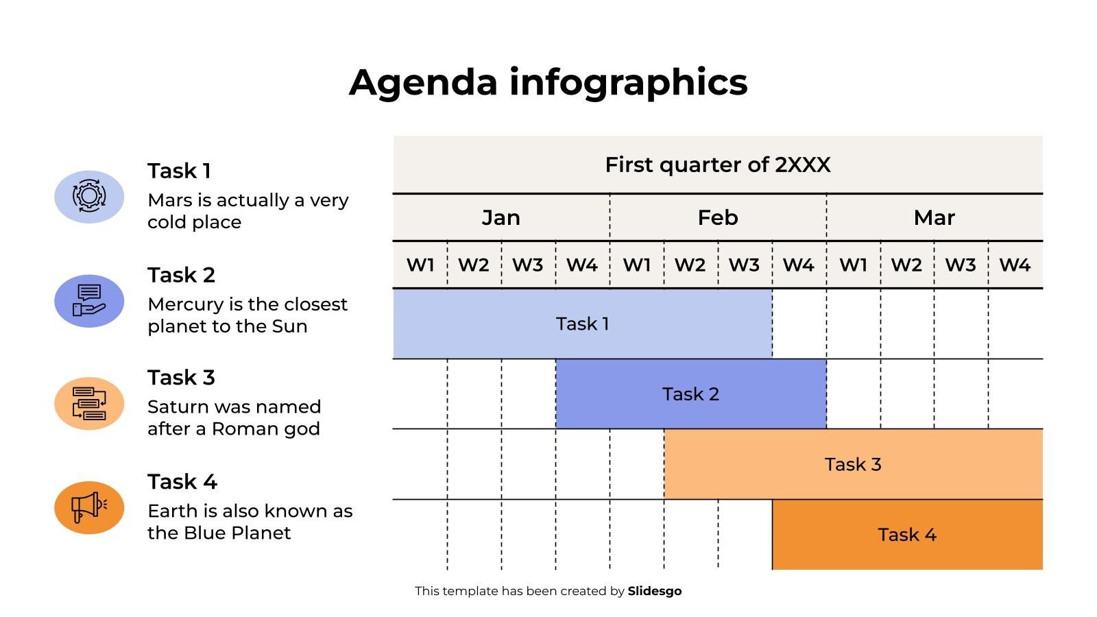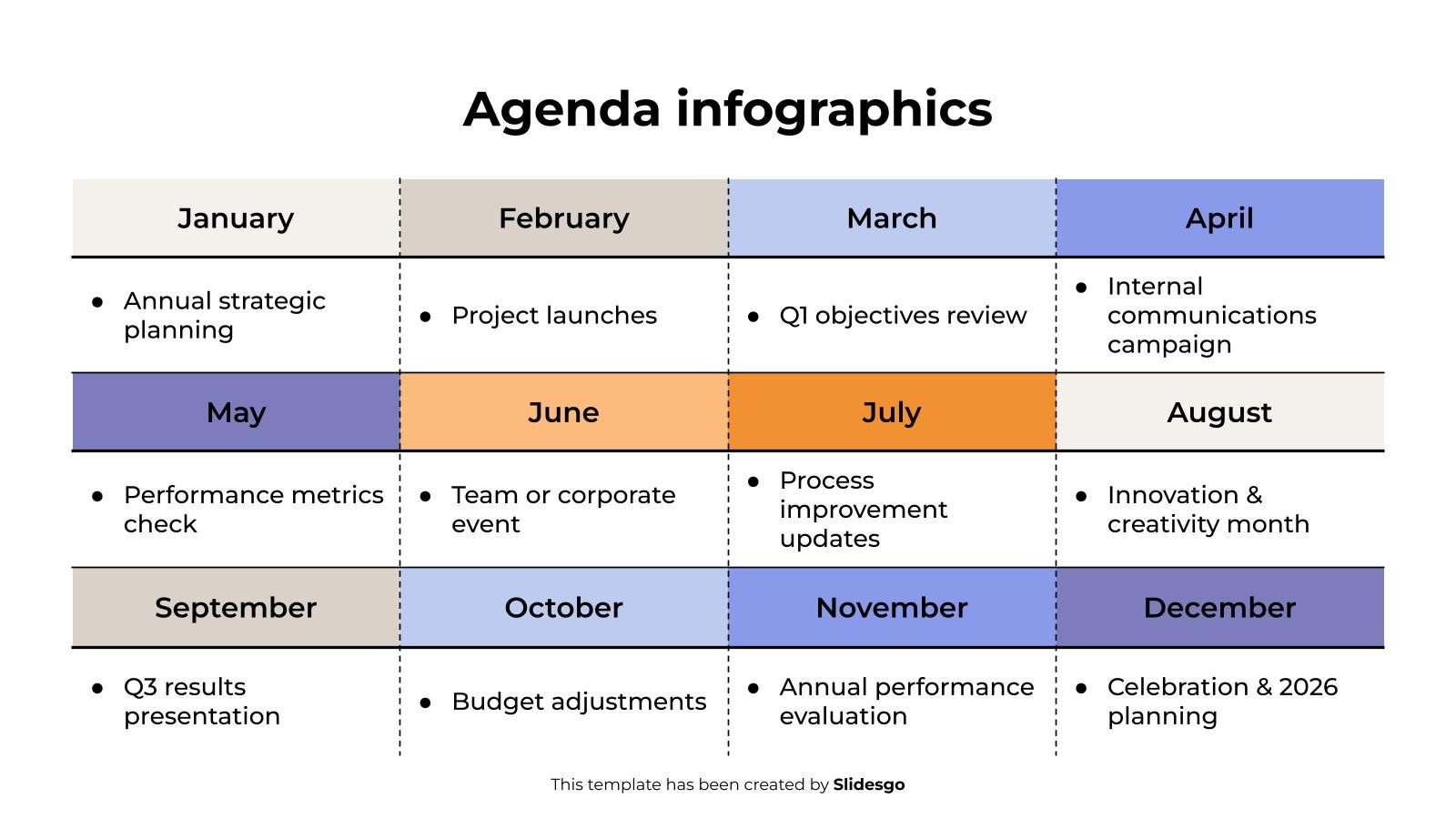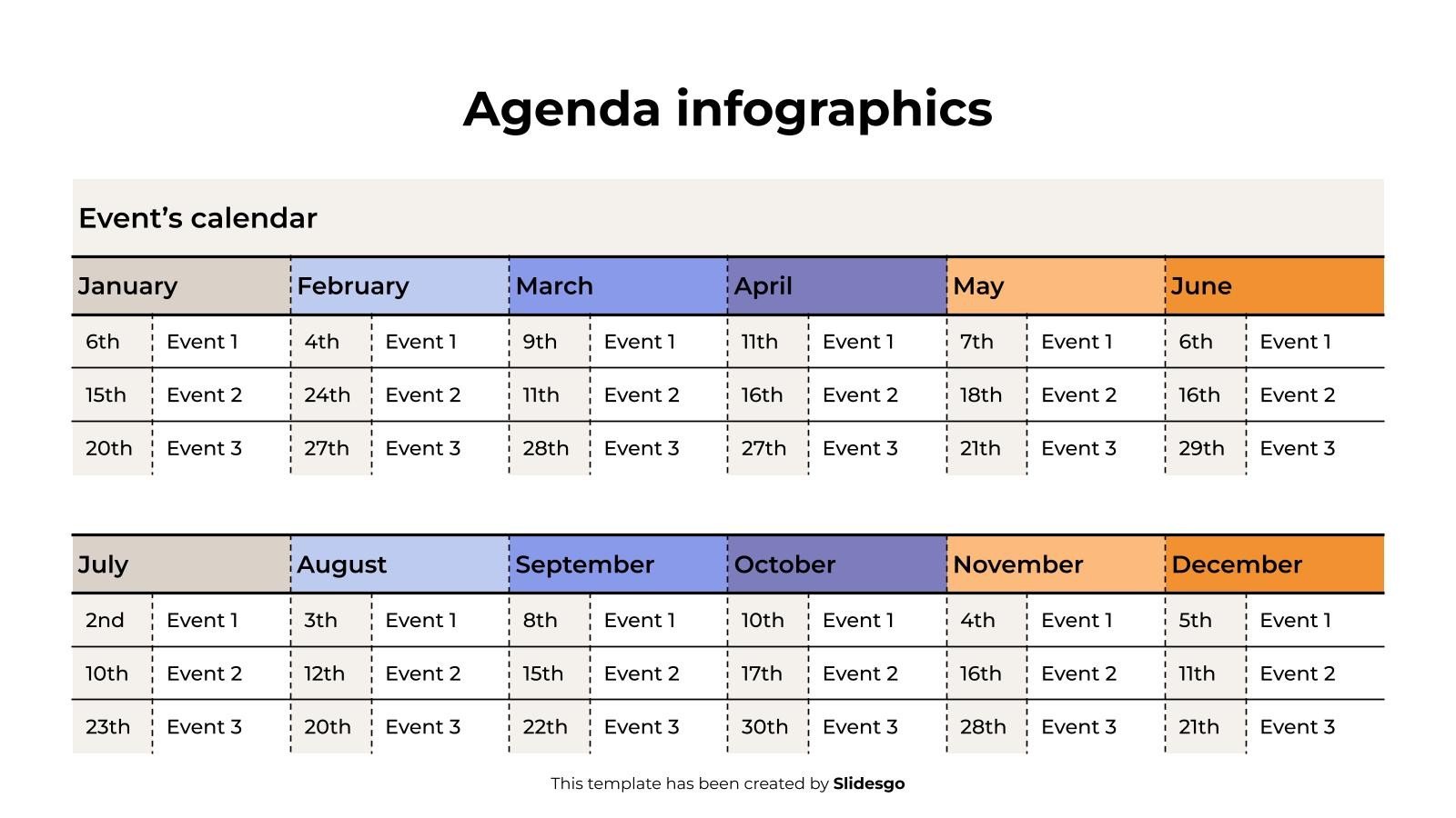 “下载适用于 PowerPoint 或 Google 幻灯片的议程信息图表模板。无论您是组织个人日程、制定学习目标还是制定活动计划,这些模板都能为您提供支持!它们的设计考虑到了创造力和简单性,使规划不仅高效而且有趣。这些模板可轻松定制并与不同平台兼容,如果您喜欢动手作,这些模板非常适合以数字方式组织或打印出来。是时候更明智地计划、组织起来,看看计划是多么容易了!