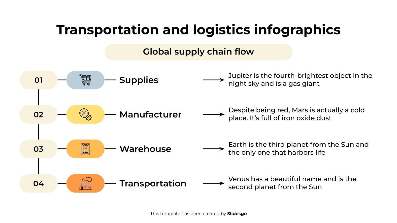 下载适用于 PowerPoint 或 Google 幻灯片的运输和物流信息图表模板,以充分利用信息图表。无论您是想在表格中组织您的业务预算,还是想示意性地分析您过去一年的销售额,这套信息图表资源都将有很大帮助。立即开始使用信息图表,将您的业务或营销演示提升到一个新的水平。