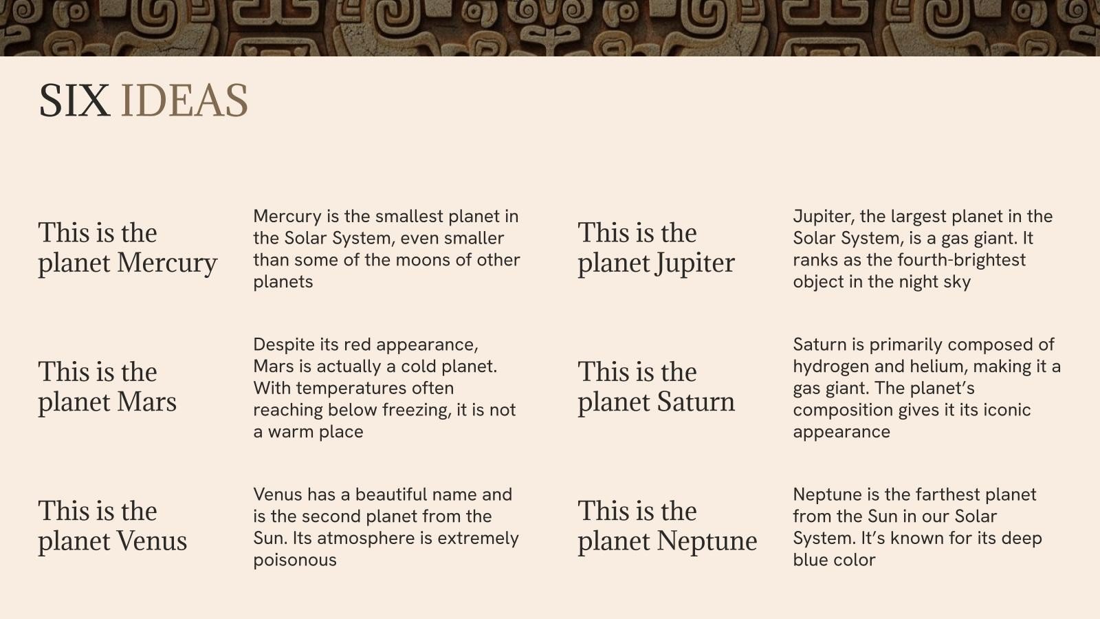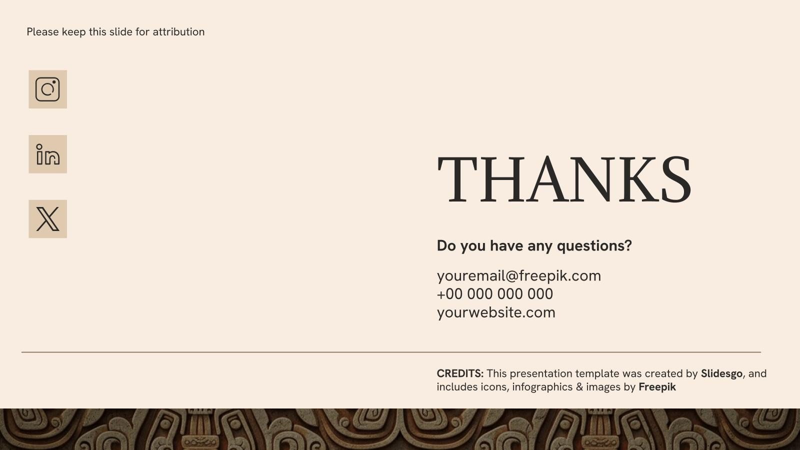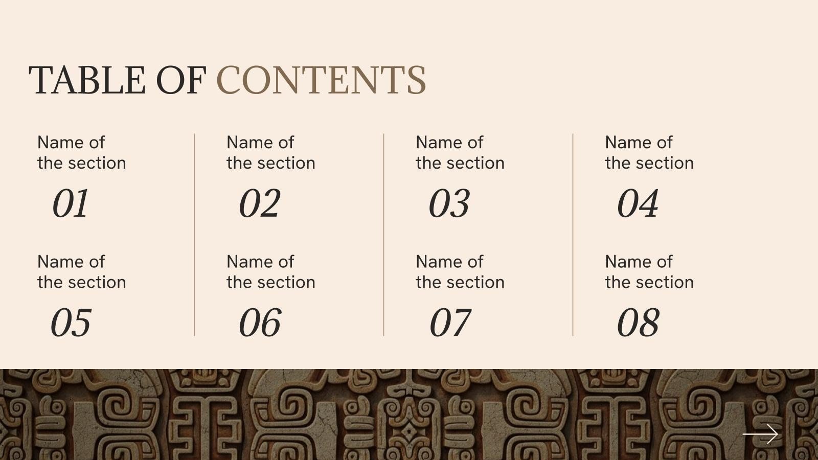 “下载适用于 PowerPoint 或 Google 幻灯片的玛雅和阿兹特克历史演示文稿,并开始用创意和原创设计给观众留下深刻印象。像这里这样的 Slidesgo 模板提供了通过使用不同的图形资源以清晰、简洁和直观的方式传达概念、想法或主题的可能性。你需要谈论一个特定的话题,但你不知道该怎么做?尝试使用像这样的演示文稿,100% 可定制!