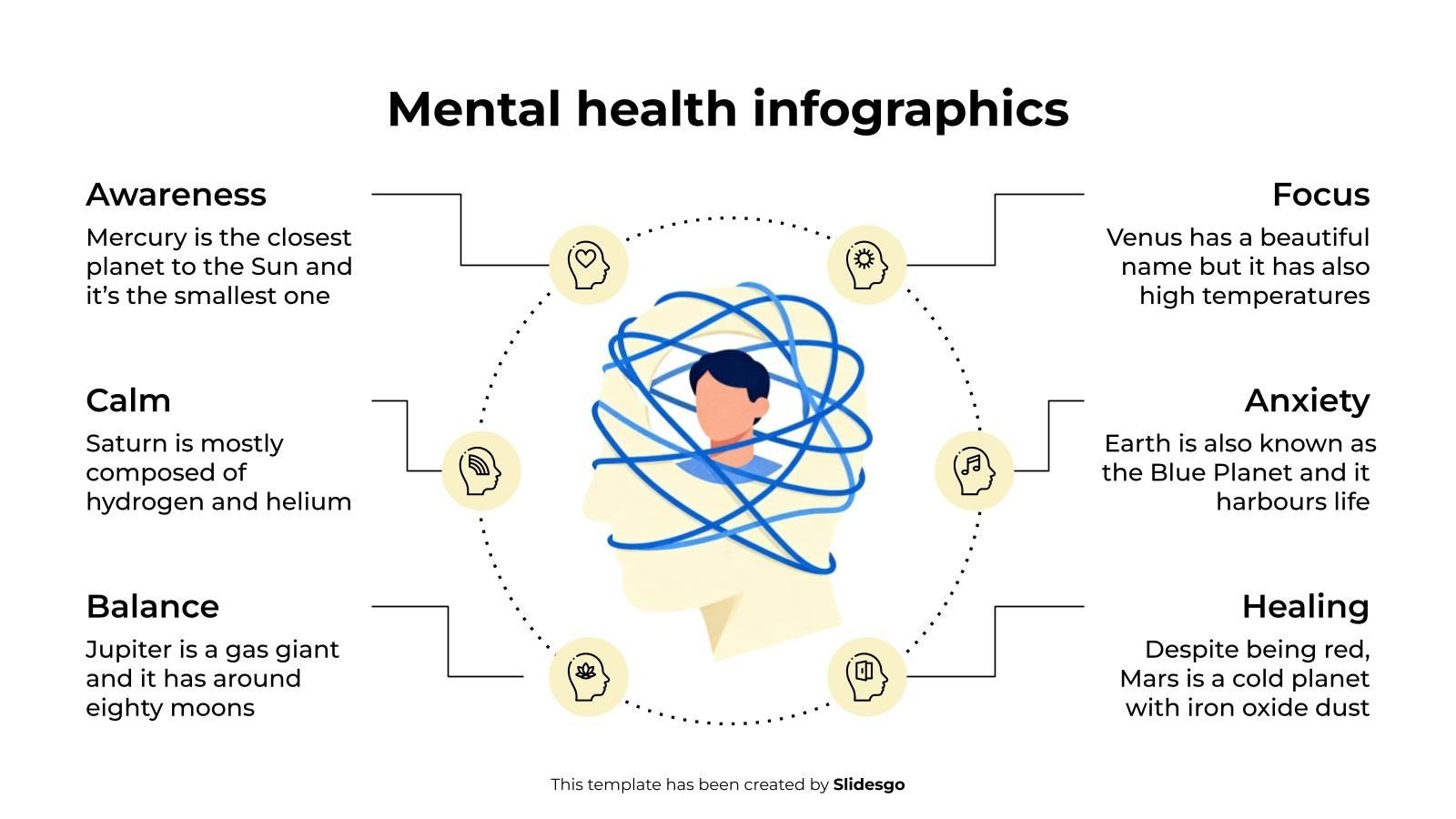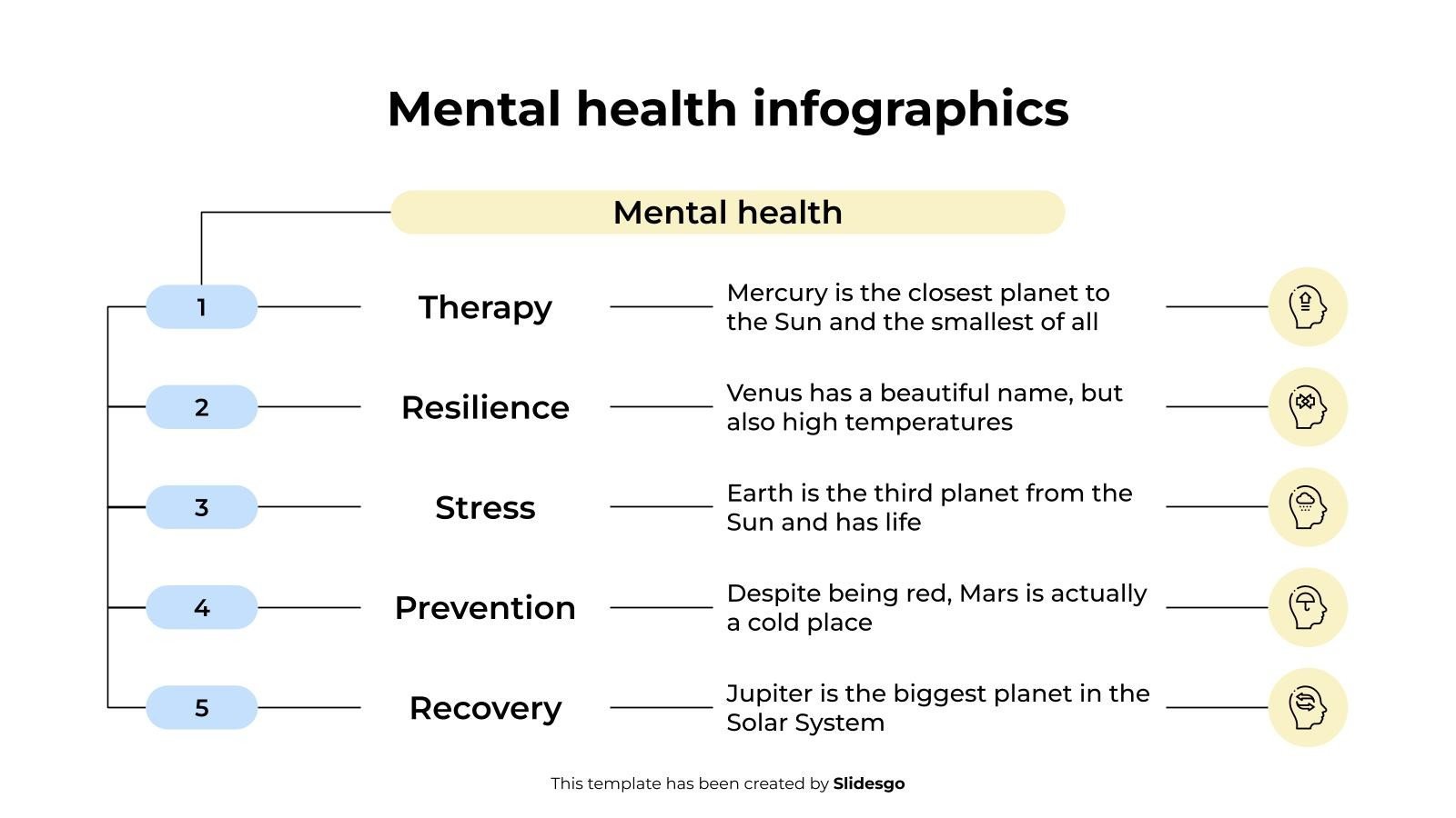 “下载适用于 PowerPoint 或 Google 幻灯片的心理健康信息图表模板。当需要进行以医学为主题的演示时,就会出现一个问题。我能传达一个复杂的医学概念吗?多亏了这个带有医学演示信息图表资源的模板,这种担忧将不复存在。在演示文稿中使用您最喜欢的信息图表,对其进行自定义并获得完美的结果。