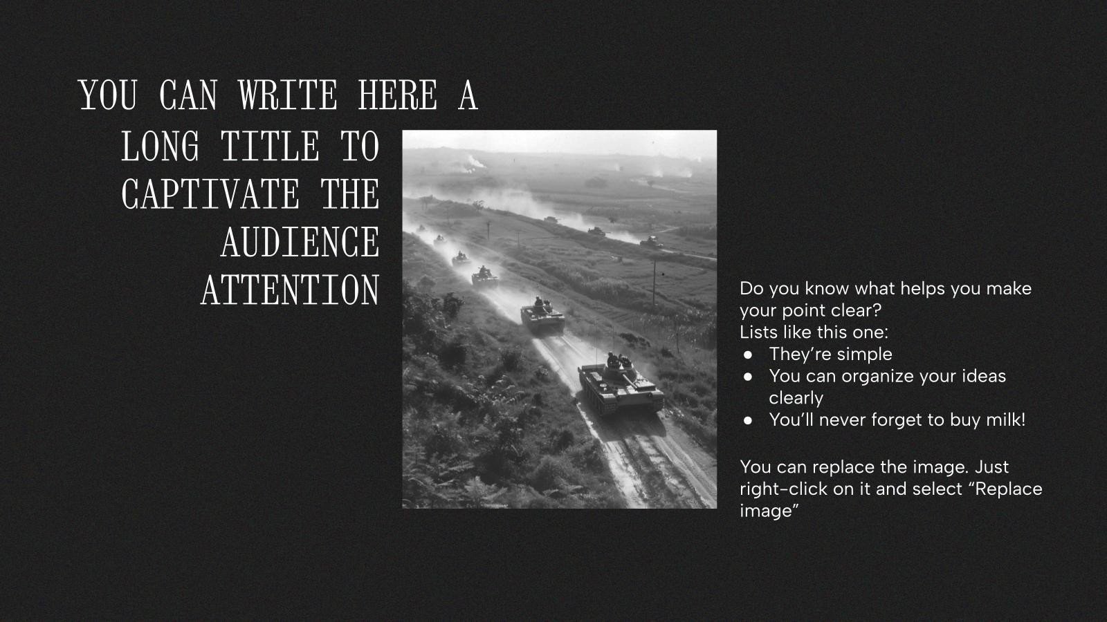 “下载 PowerPoint 或 Google 幻灯片的巴西军事独裁演示文稿,并开始用创意和原创设计给观众留下深刻印象。像这里这样的 Slidesgo 模板提供了通过使用不同的图形资源以清晰、简洁和直观的方式传达概念、想法或主题的可能性。你需要谈论一个特定的话题,但你不知道该怎么做?尝试使用像这样的演示文稿,100% 可定制!