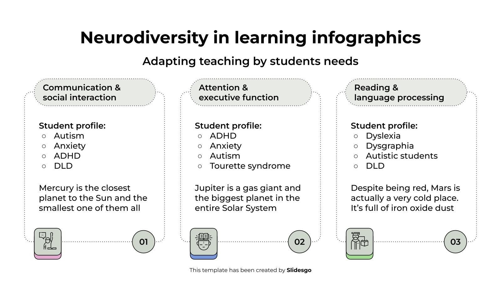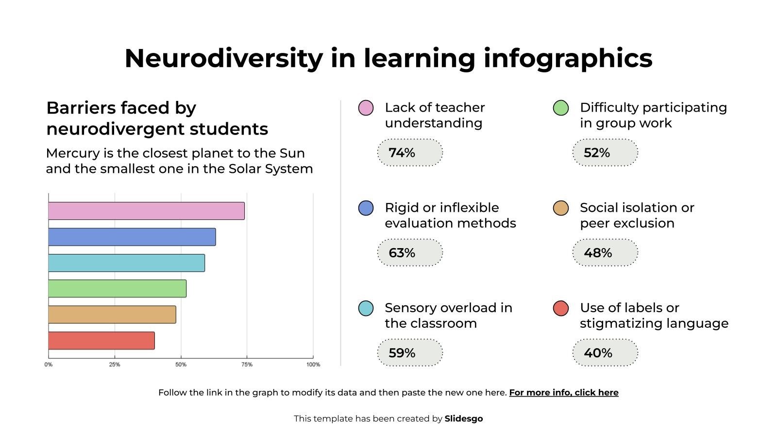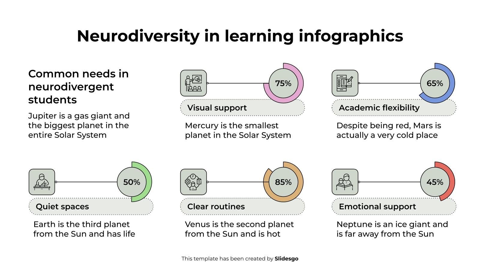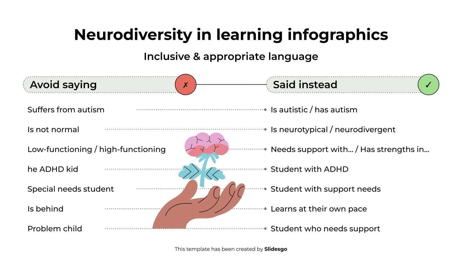 下载适用于 PowerPoint 或 Google 幻灯片的学习信息图表中的神经多样性模板,并发现这组用于教育演示的可编辑信息图表。这些资源,从图形到表格,可以与其他演示文稿结合使用或独立使用。最重要的是您将实现的目标:以有序、清晰的方式传递信息。立即下载这组信息图表,用您的方式彻底改变教育世界。