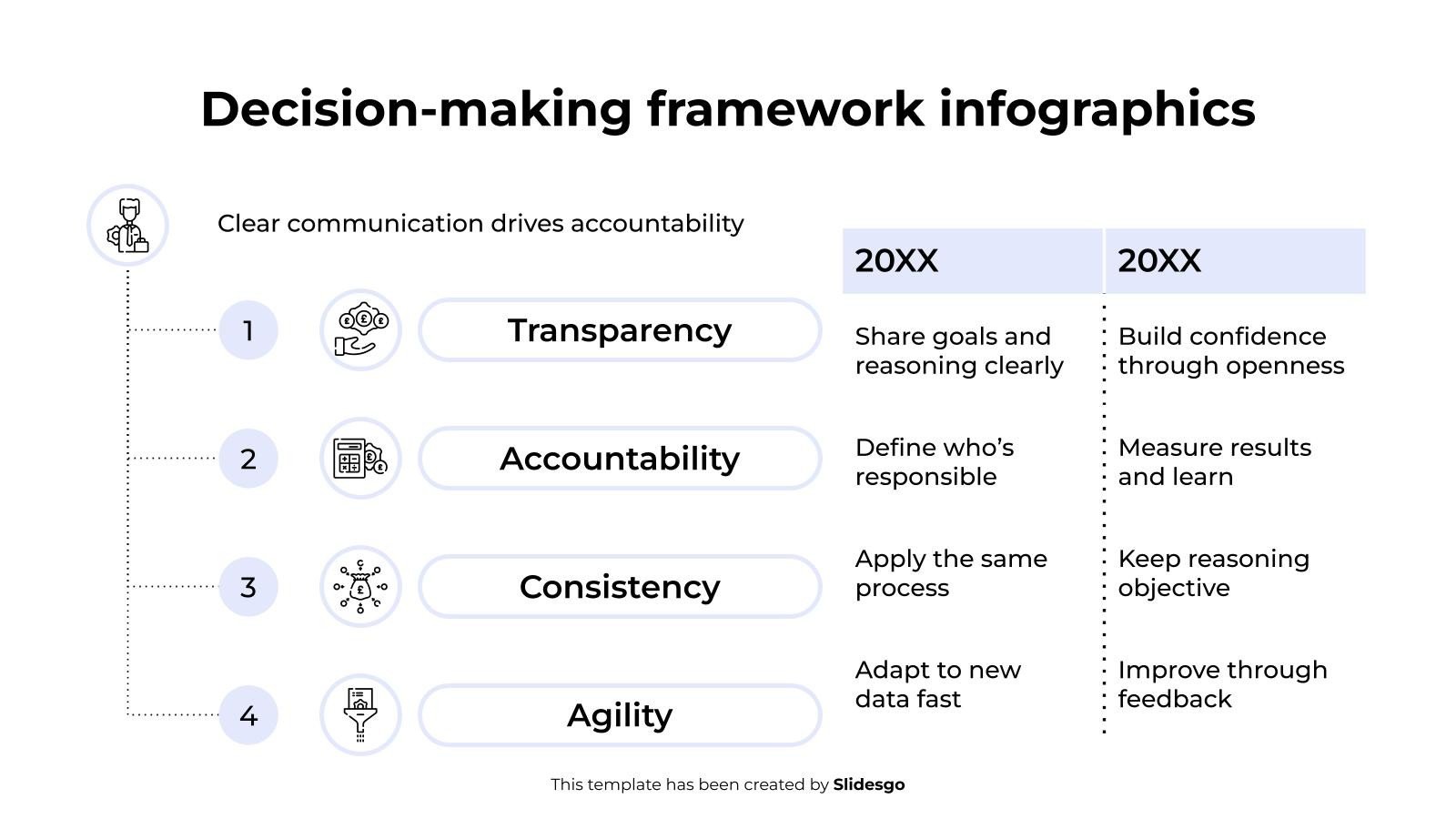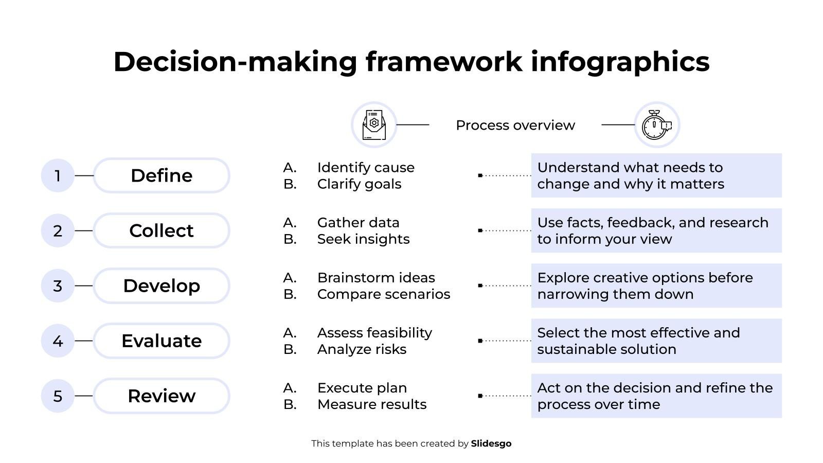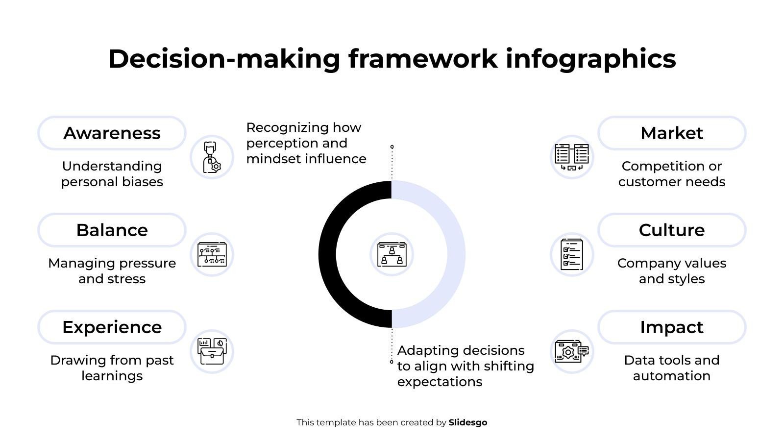 下载适用于 PowerPoint 或 Google 幻灯片的决策框架信息图表模板,以充分利用信息图表。无论您是想在表格中组织您的业务预算,还是想示意性地分析您过去一年的销售额,这套信息图表资源都将有很大帮助。立即开始使用信息图表,将您的业务或营销演示提升到一个新的水平。