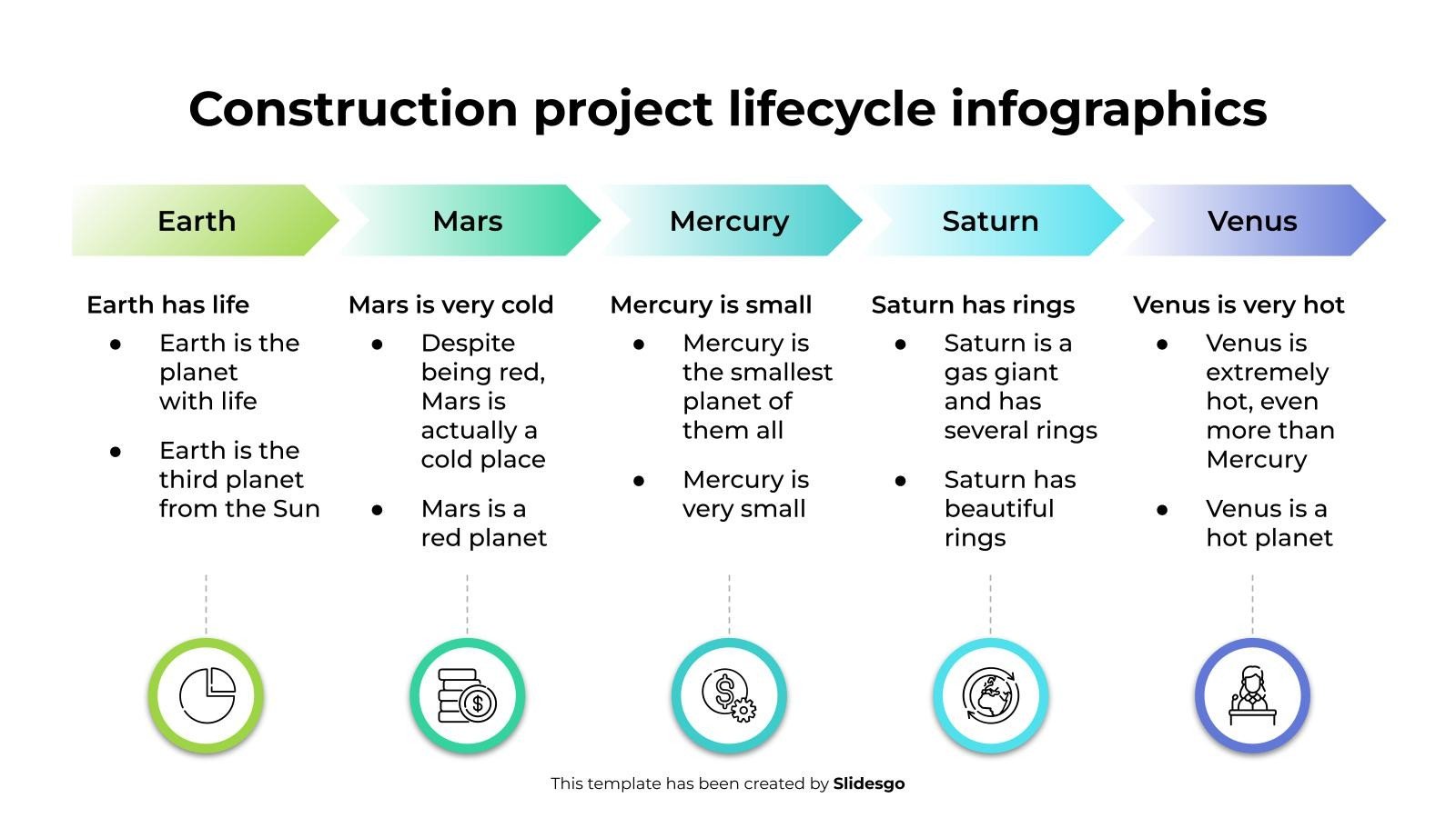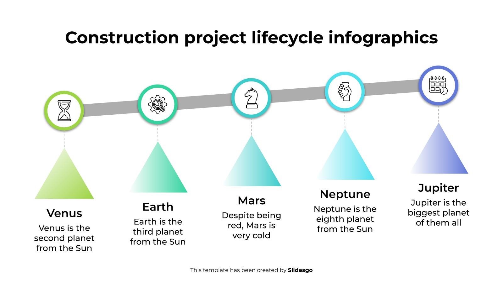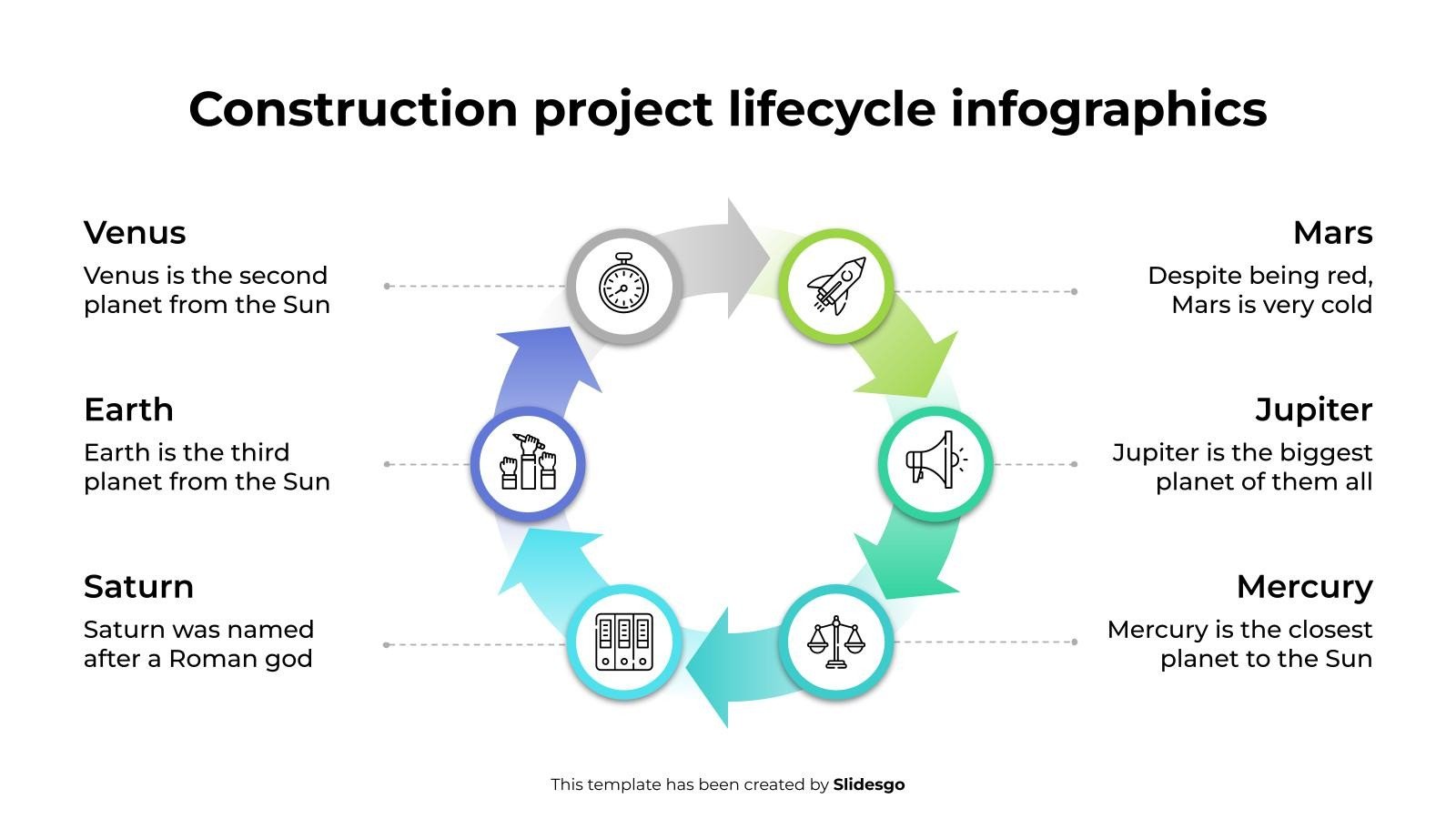下载适用于 PowerPoint 或 Google 幻灯片的建筑项目生命周期信息图表模板,以充分利用信息图表。无论您是想在表格中组织您的业务预算,还是想示意性地分析您过去一年的销售额,这套信息图表资源都将有很大帮助。立即开始使用信息图表,将您的业务或营销演示提升到一个新的水平。