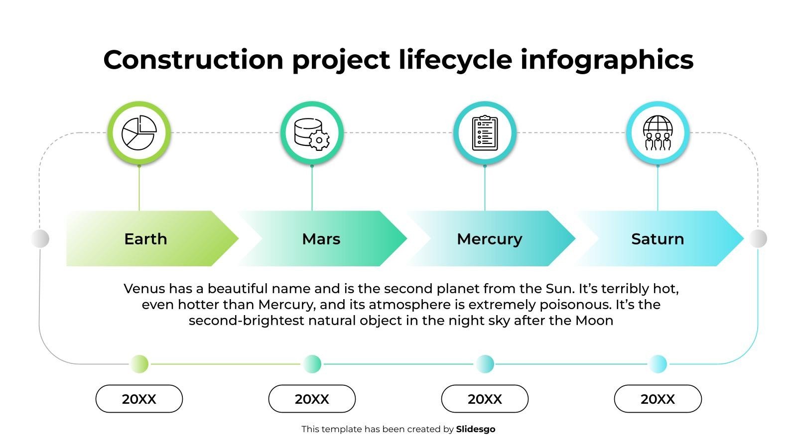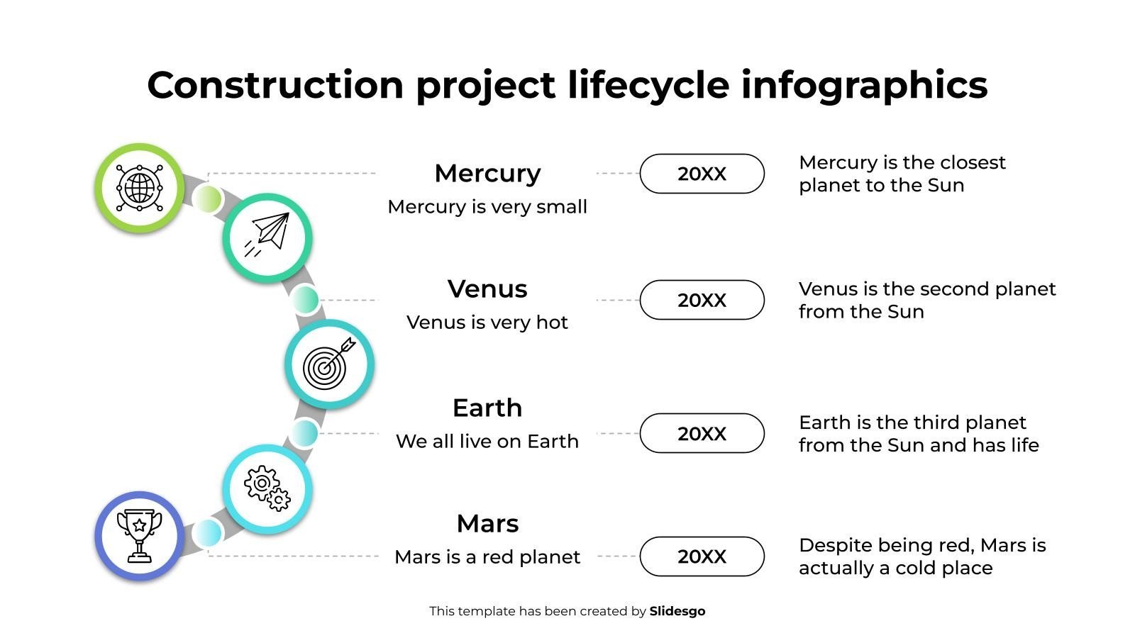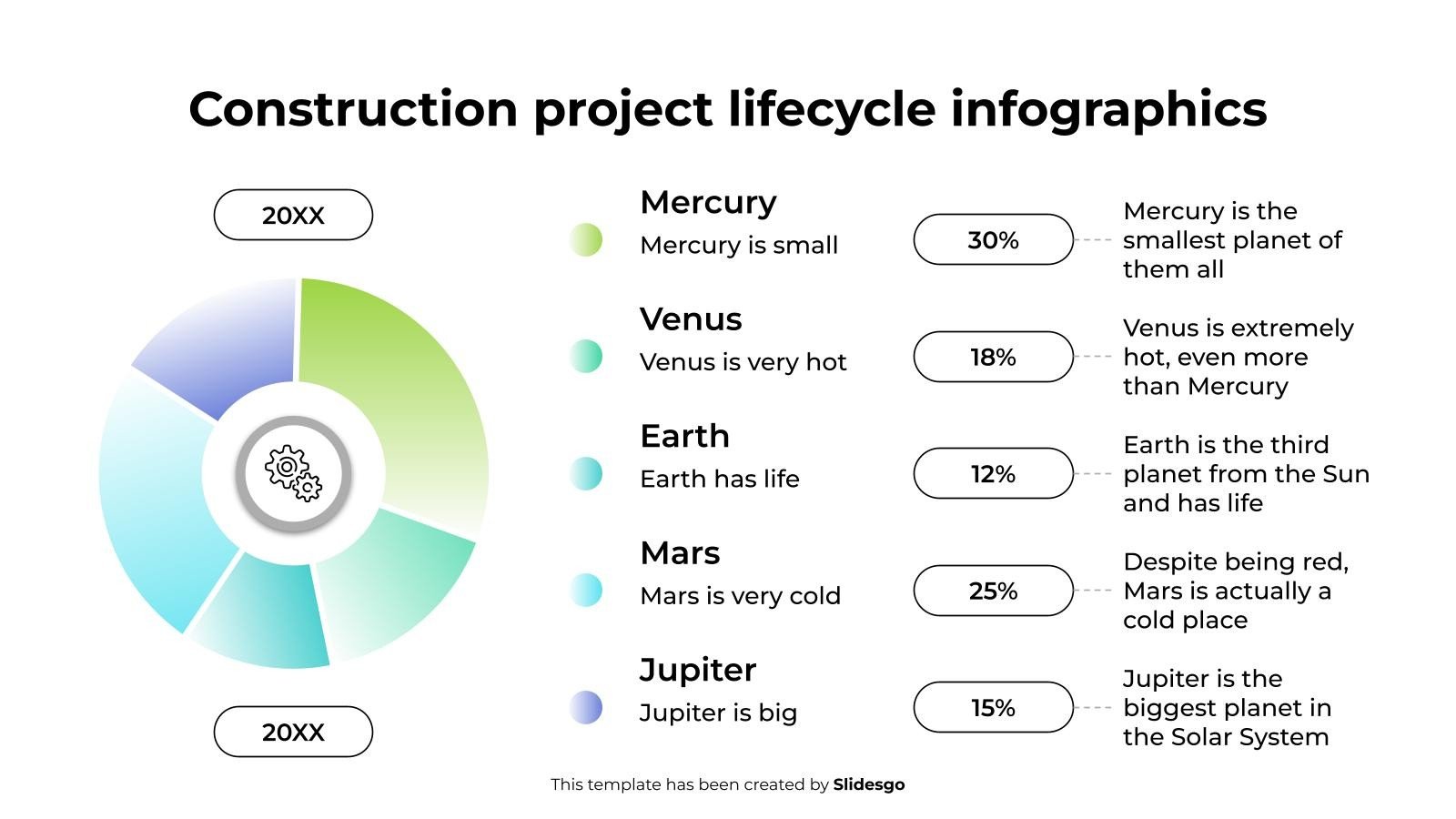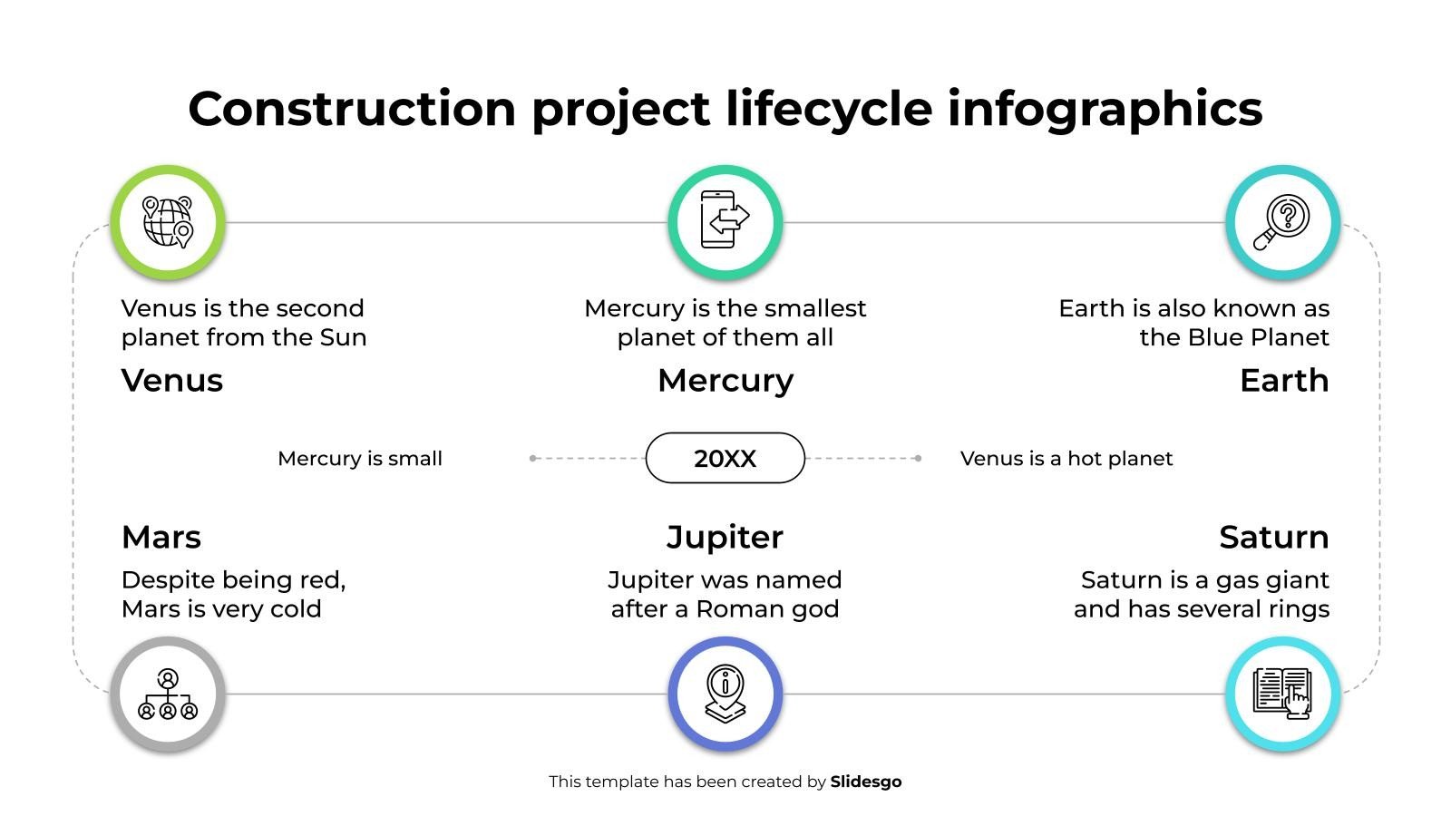 下载适用于 PowerPoint 或 Google 幻灯片的建筑项目生命周期信息图表模板,以充分利用信息图表。无论您是想在表格中组织您的业务预算,还是想示意性地分析您过去一年的销售额,这套信息图表资源都将有很大帮助。立即开始使用信息图表,将您的业务或营销演示提升到一个新的水平。