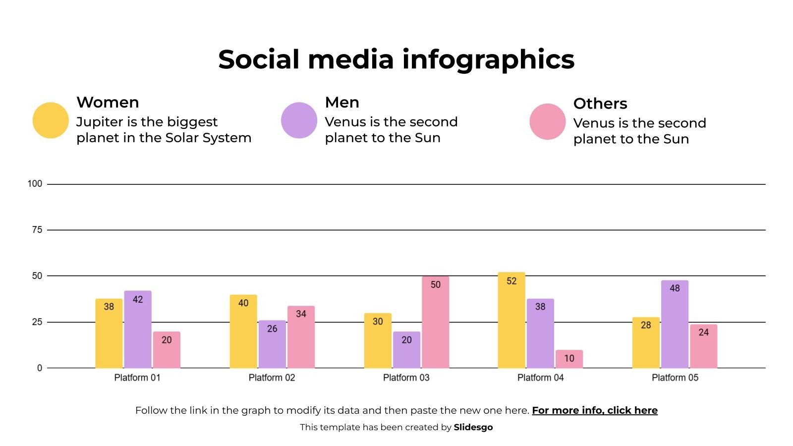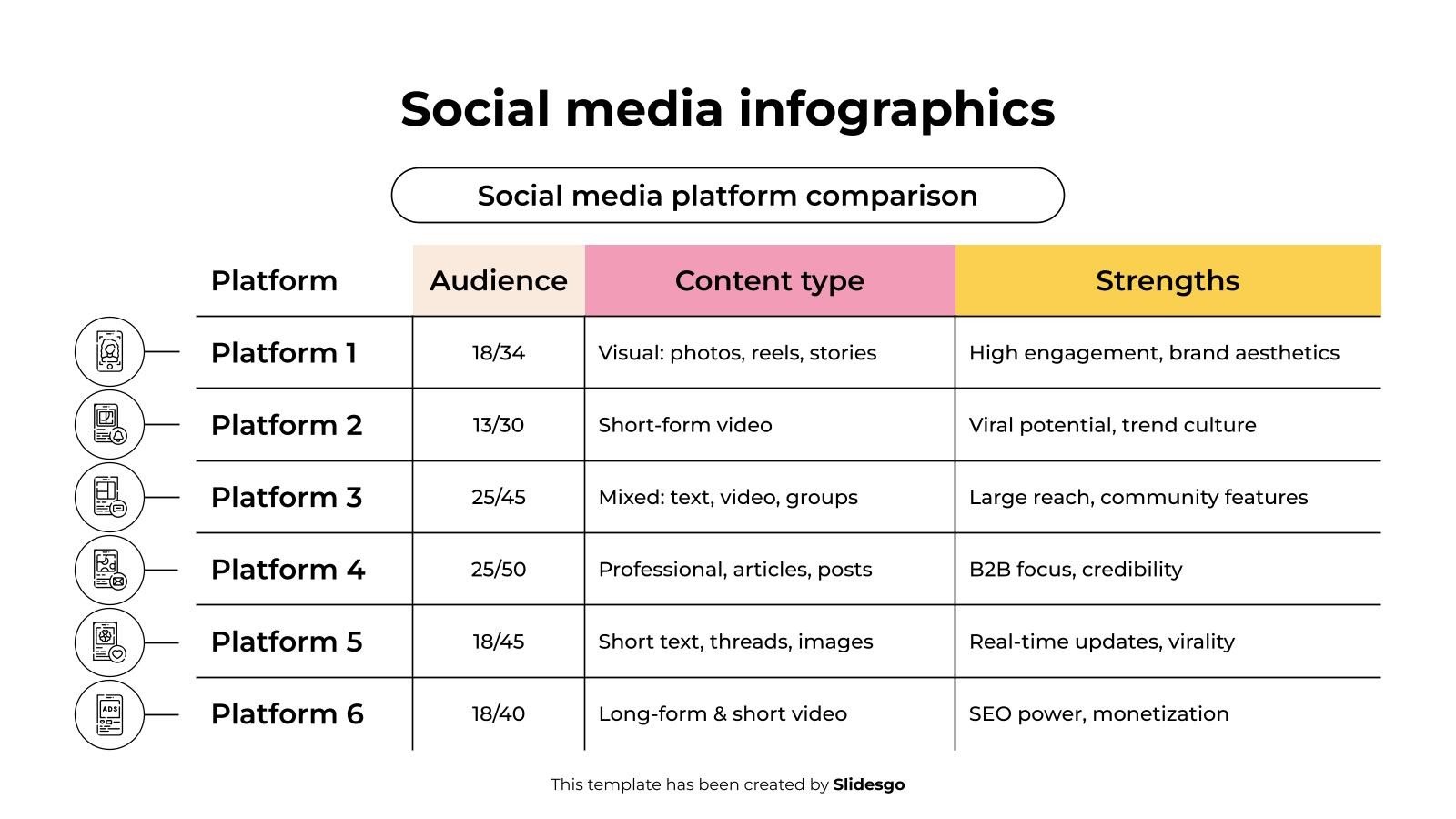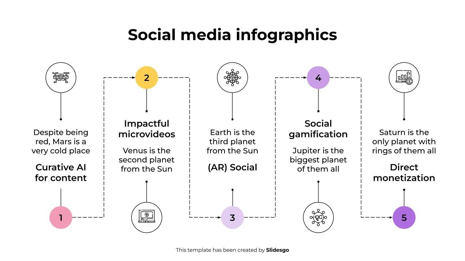 下载适用于 PowerPoint 或 Google 幻灯片的社交媒体信息图表模板,以充分利用信息图表。无论您是想在表格中组织您的业务预算,还是想示意性地分析您过去一年的销售额,这套信息图表资源都将有很大帮助。立即开始使用信息图表,将您的业务或营销演示提升到一个新的水平。
