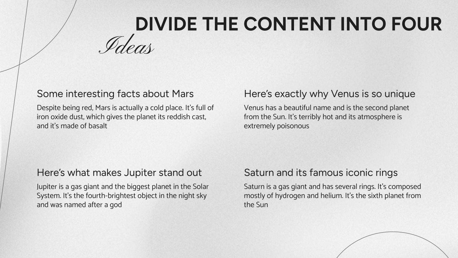 “下载心智图工作坊的PowerPoint或Google幻灯片演示,开始用创意和原创的设计打动你的听众。像这里这样的幻灯片模板,可以通过不同的图形资源,以清晰、简洁和直观的方式传达一个概念、想法或主题。你需要谈论一个具体话题,但你不知道怎么说?试试用像这里这样的演示,百分之百可定制!”