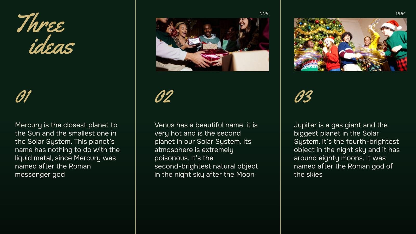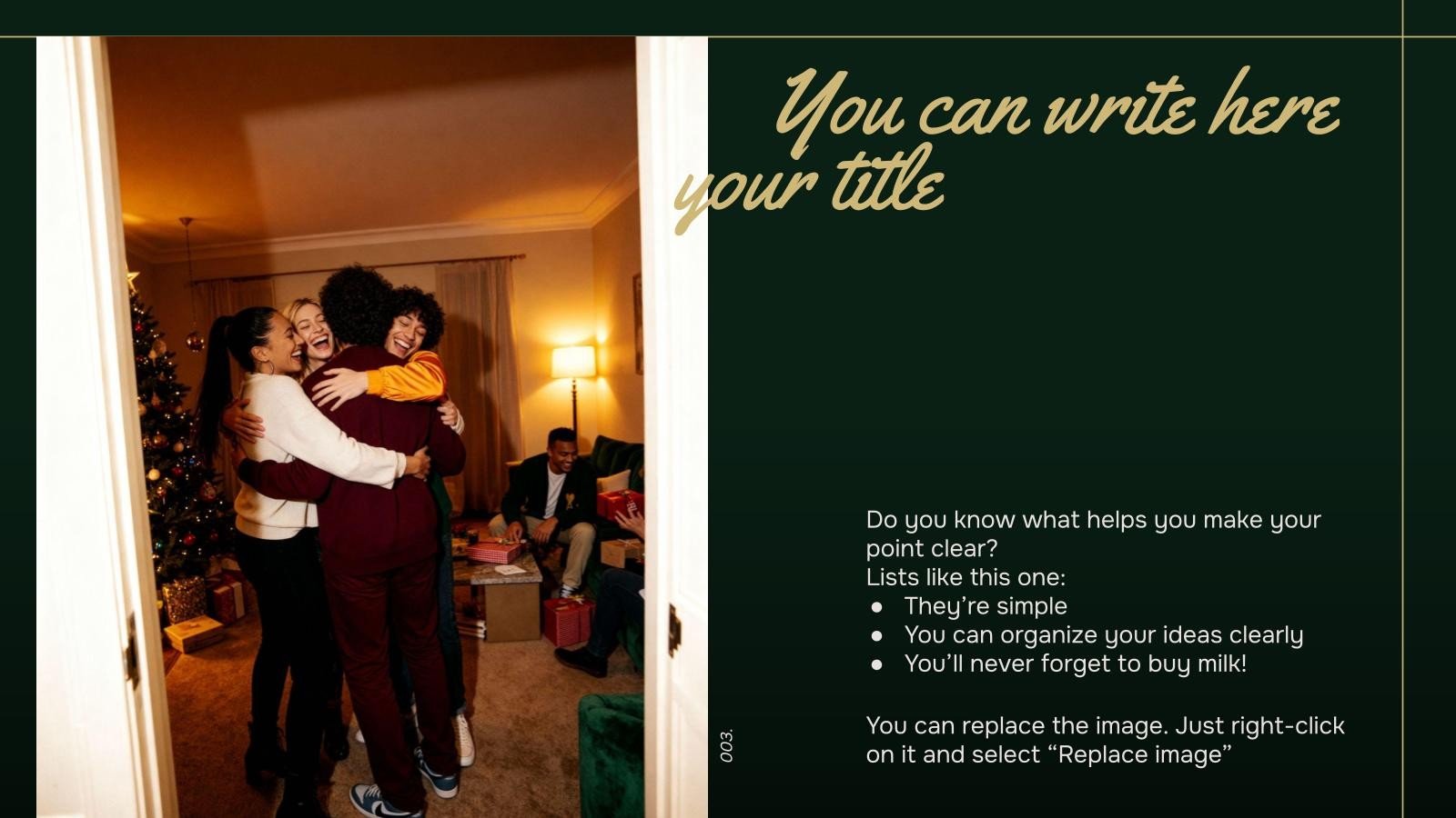 “下载圣诞聚会演示文稿,支持PowerPoint或Google幻灯片,开始用创意和原创的设计打动你的观众。像这里这样的幻灯片模板,可以通过不同的图形资源,以清晰、简洁和直观的方式传达一个概念、想法或主题。你需要谈论一个具体话题,但你不知道怎么说?试试用像这里这样的演示,百分之百可定制!”