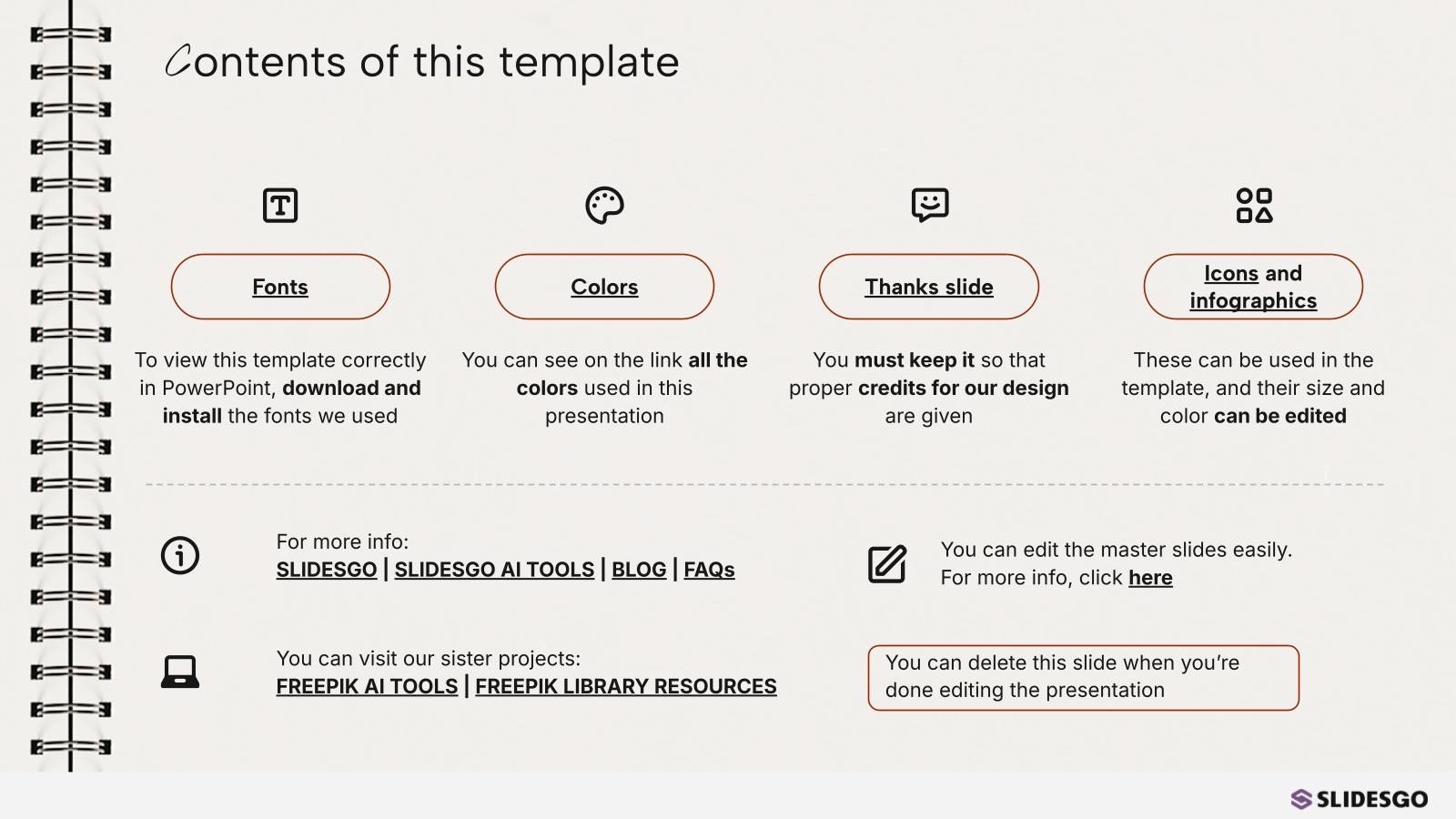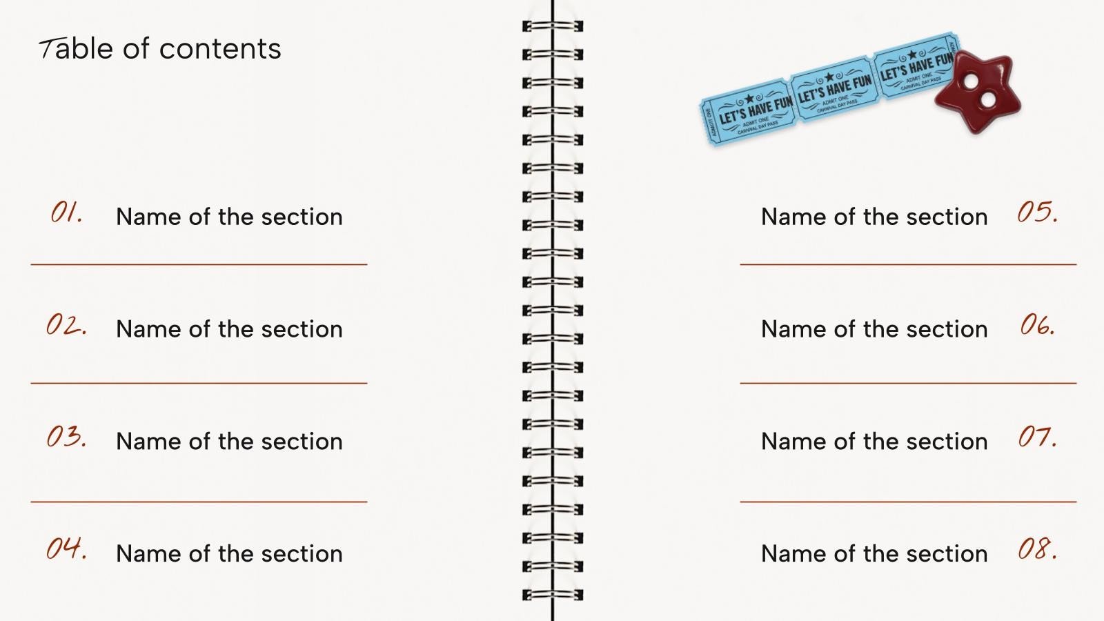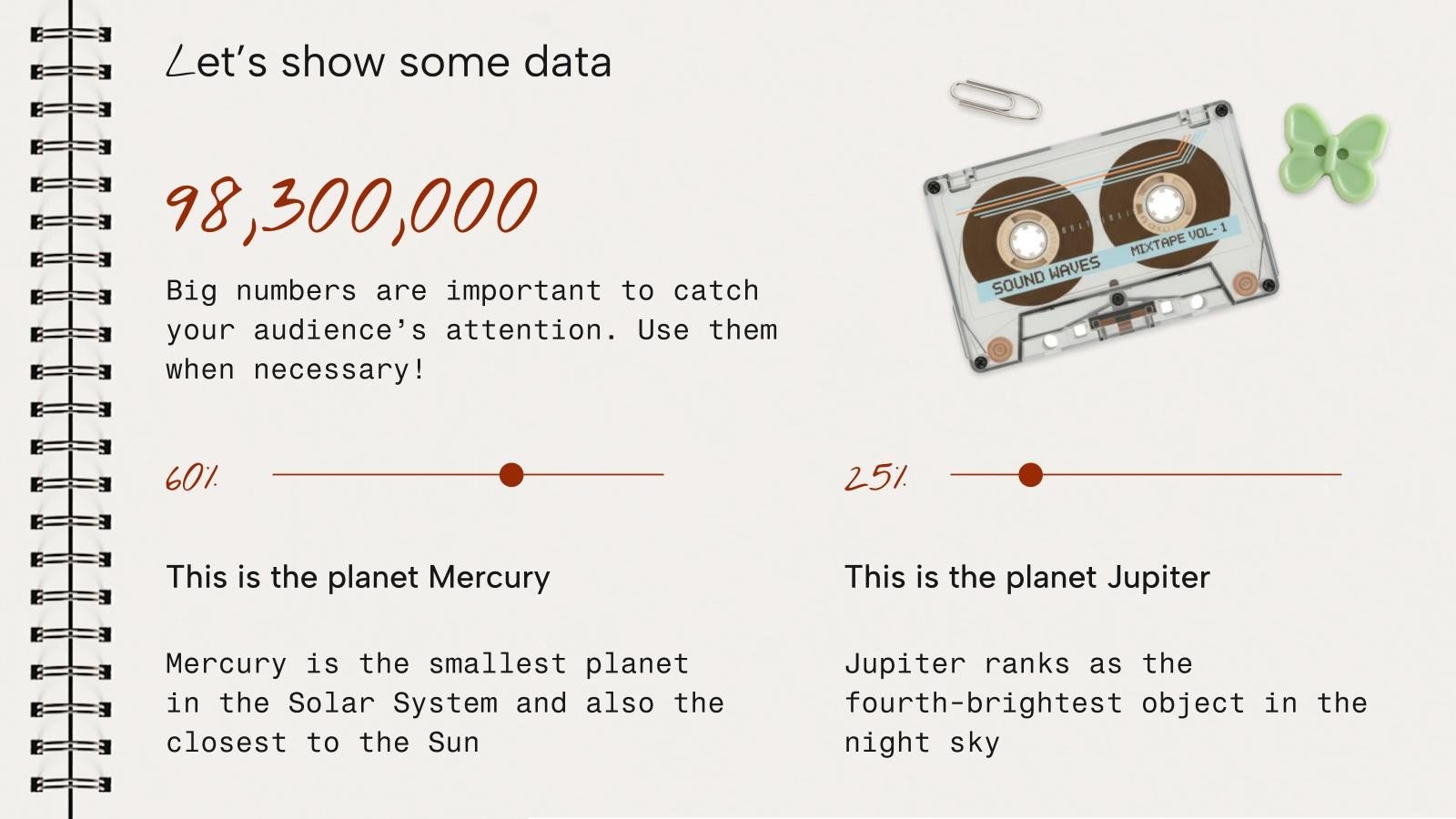 “下载《笔记本封面设计演示文稿》,支持PowerPoint或Google幻灯片,开始用创意和原创的设计打动你的听众。像这里这样的幻灯片模板,可以通过不同的图形资源,以清晰、简洁和直观的方式传达一个概念、想法或主题。你需要谈论一个具体话题,但你不知道怎么说?试试用像这里这样的演示,百分之百可定制!”
