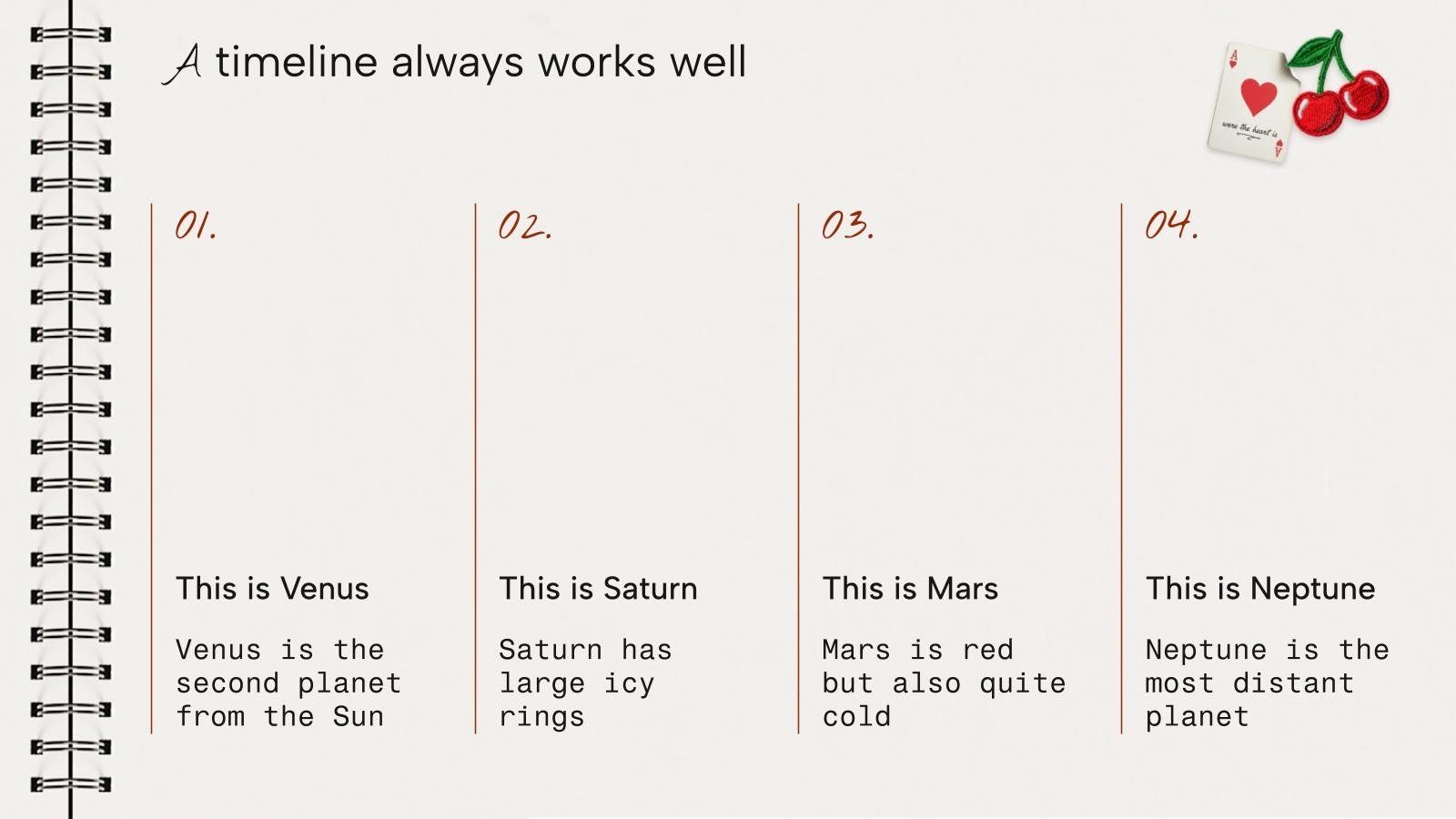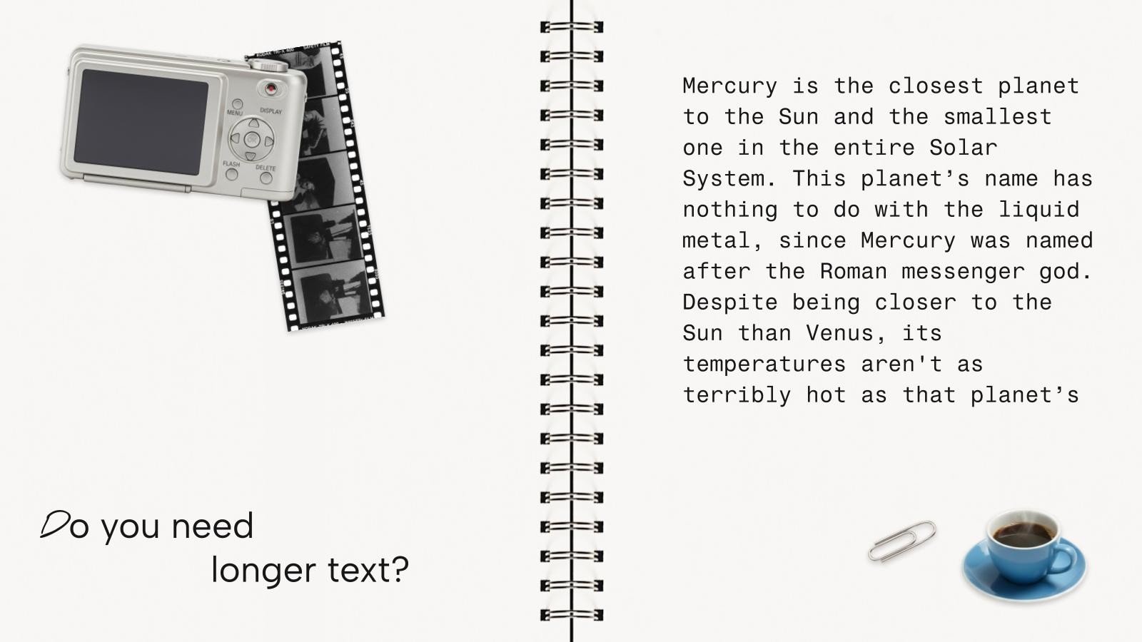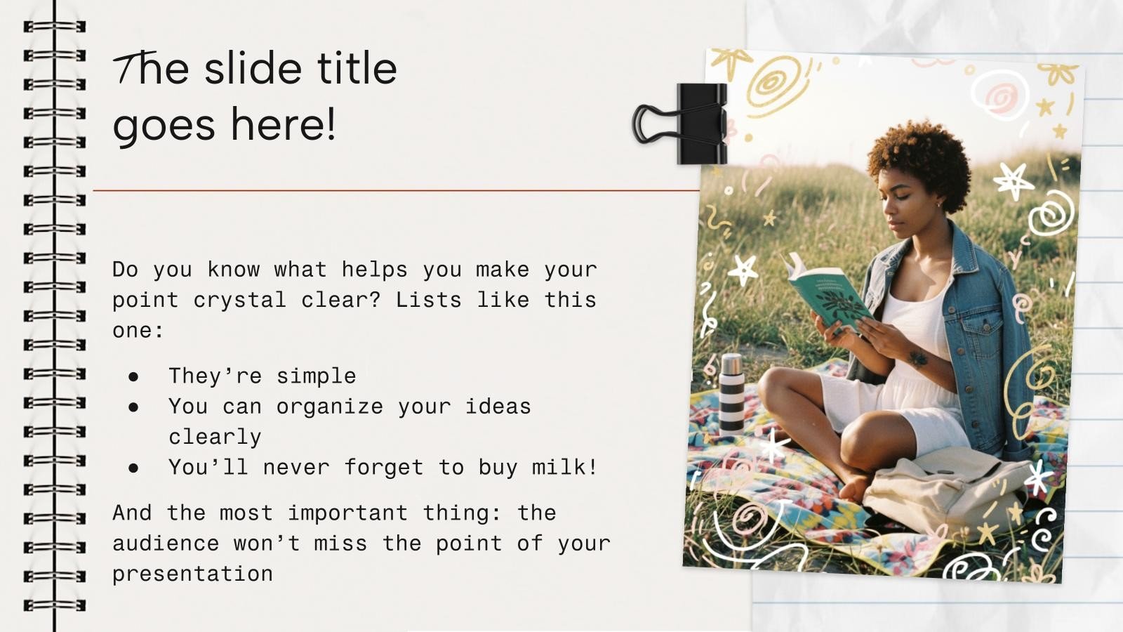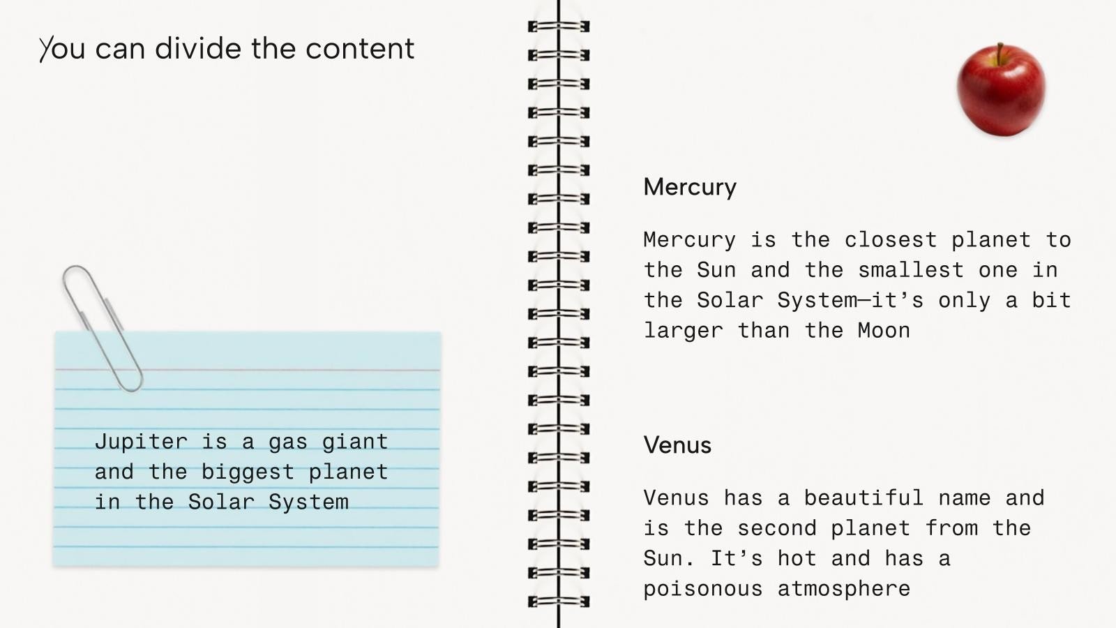 “下载《笔记本封面设计演示文稿》,支持PowerPoint或Google幻灯片,开始用创意和原创的设计打动你的听众。像这里这样的幻灯片模板,可以通过不同的图形资源,以清晰、简洁和直观的方式传达一个概念、想法或主题。你需要谈论一个具体话题,但你不知道怎么说?试试用像这里这样的演示,百分之百可定制!”