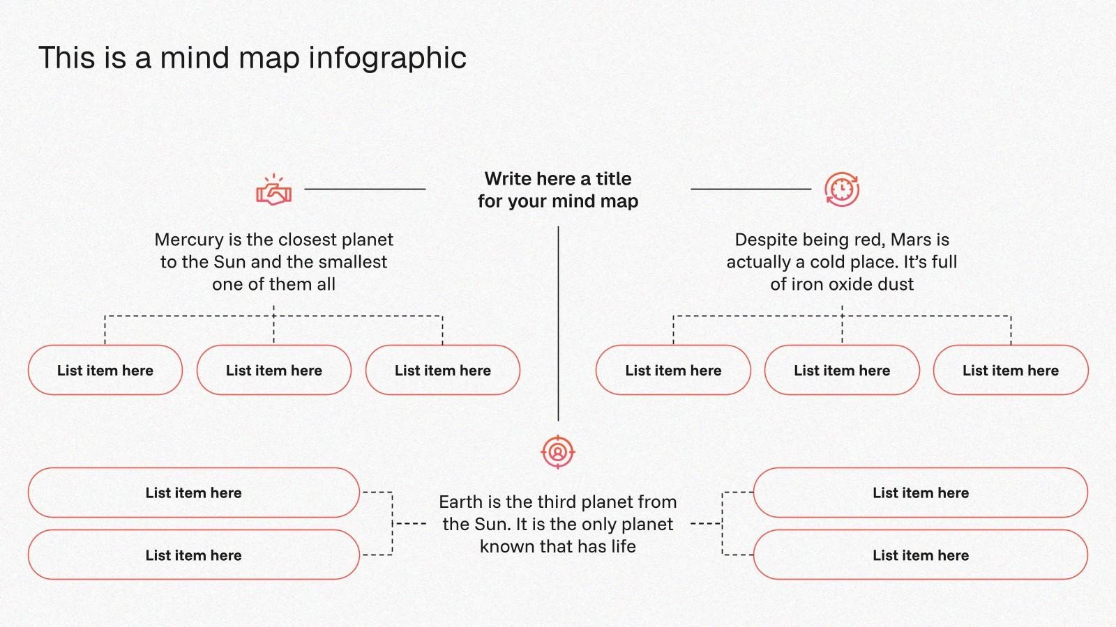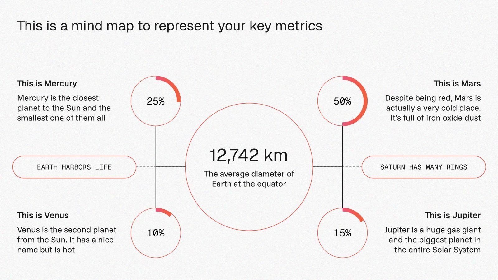 “下载Mind Maps Boost演示文稿,支持PowerPoint或Google幻灯片,开始用创意和原创的设计打动你的听众。像这里这样的幻灯片模板,可以通过不同的图形资源,以清晰、简洁和直观的方式传达一个概念、想法或主题。你需要谈论一个具体话题,但你不知道怎么说?试试用像这里这样的演示,百分之百可定制!”
