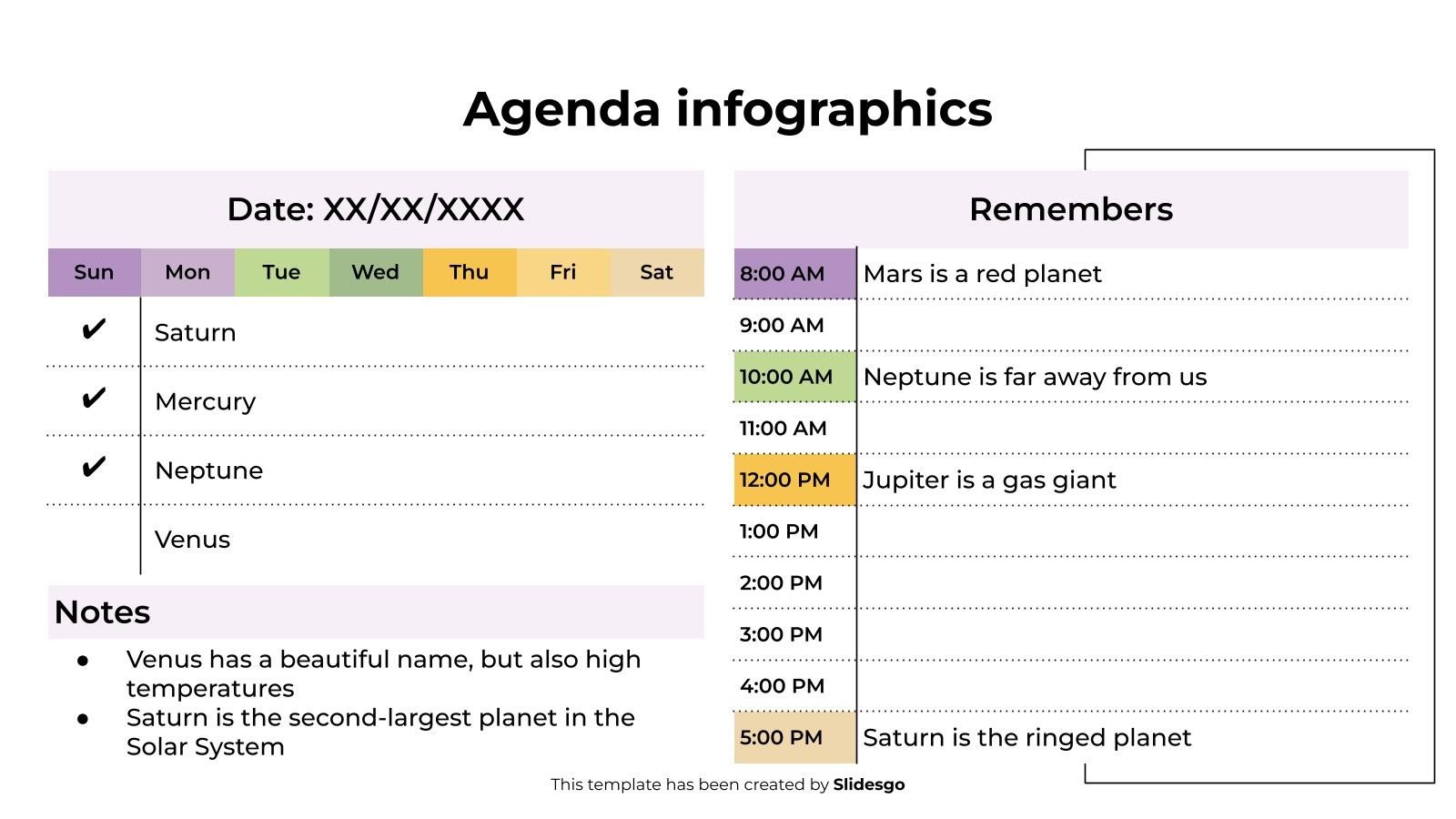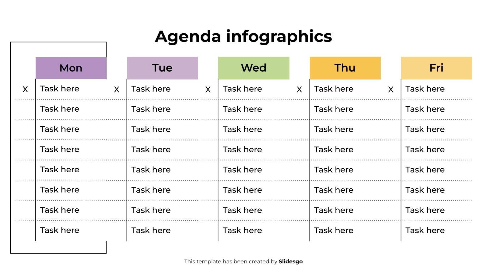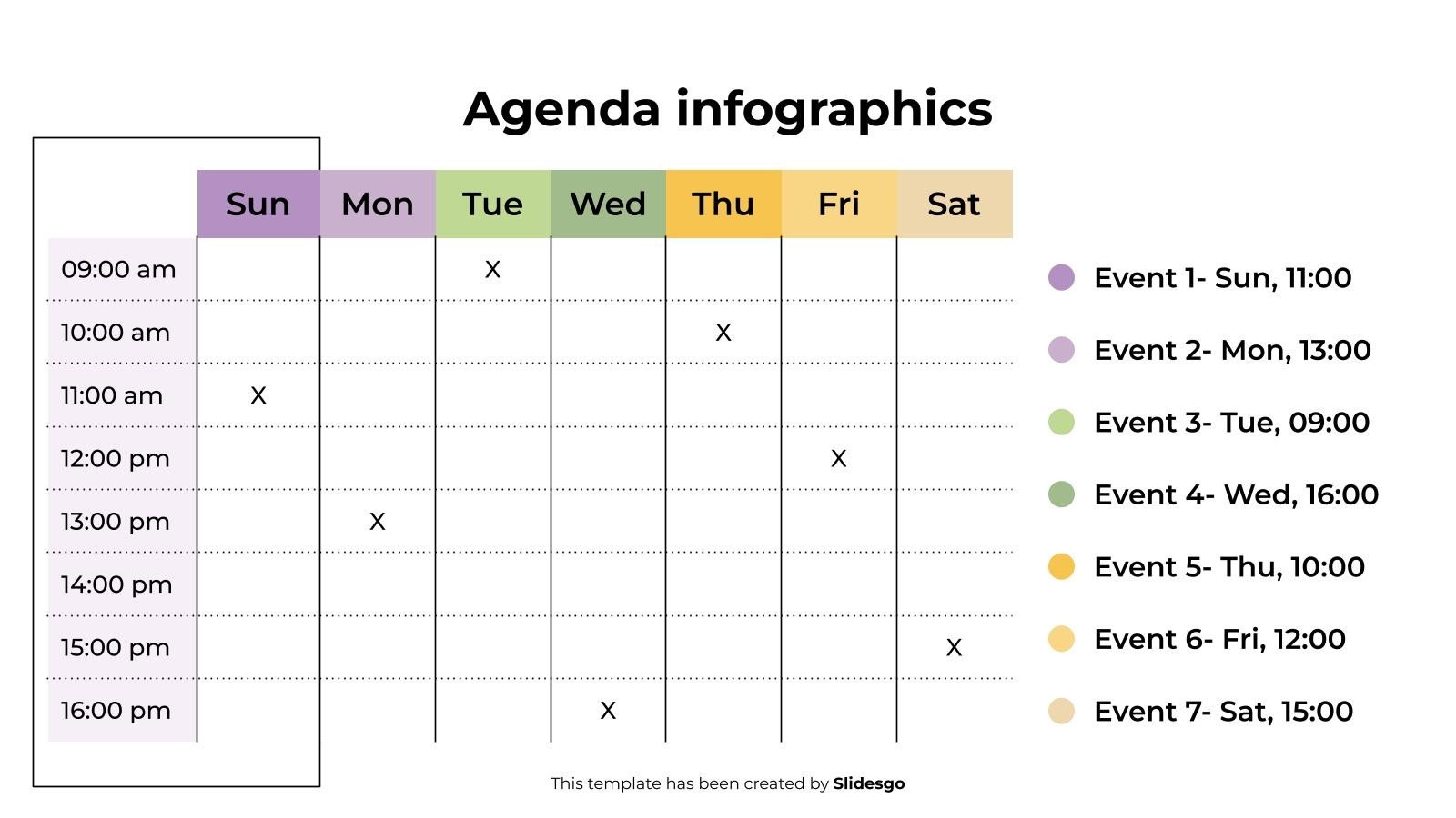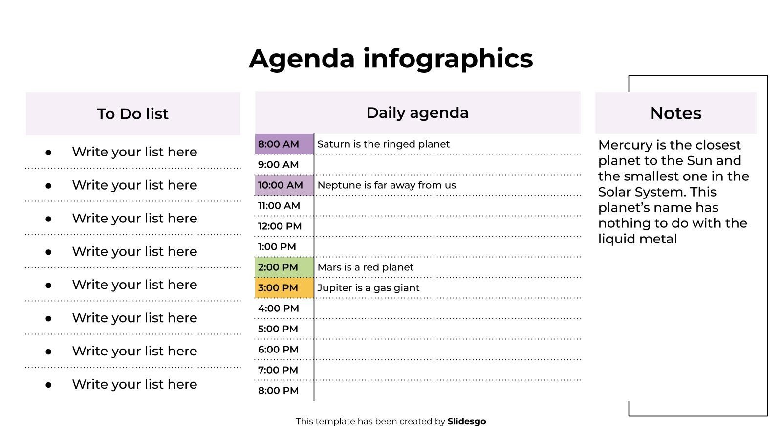 下载 Agenda 信息图表模板,适用于 PowerPoint 或 Google 幻灯片,以充分利用信息图表。无论你想用表格整理你的企业预算,还是对过去一年的销售进行示意性分析,这套信息图资源都会非常有帮助。现在就开始使用信息图表,将你的企业或营销演示提升到一个新高度。