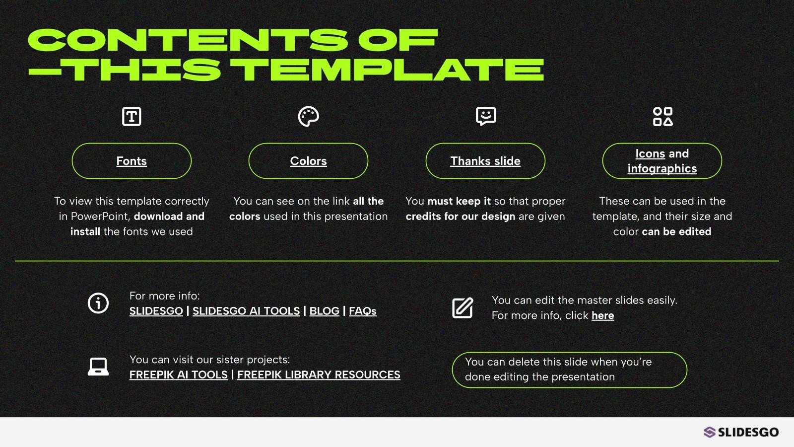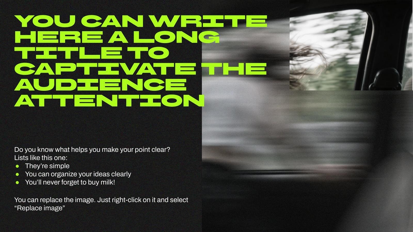 “下载适用于 PowerPoint 或 Google 幻灯片的 Bold Typography Impact 演示文稿,并开始用创意和原创设计给您的观众留下深刻印象。像这里这样的 Slidesgo 模板提供了通过使用不同的图形资源以清晰、简洁和直观的方式传达概念、想法或主题的可能性。你需要谈论一个特定的话题,但你不知道该怎么做?尝试使用像这样的演示文稿,100% 可定制!