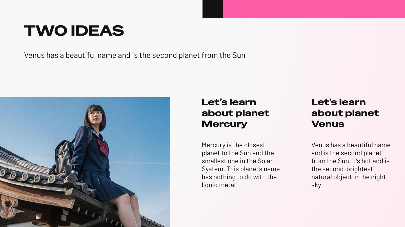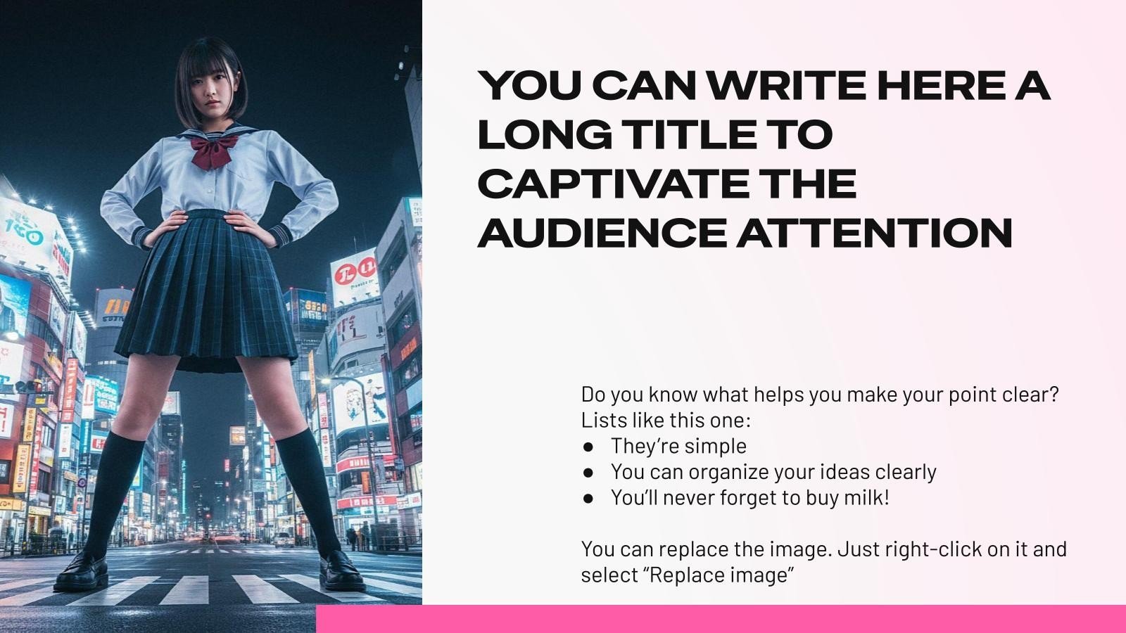 “下载 PowerPoint 或 Google 幻灯片的日本高中生活演示文稿,开始用创意和原创设计给观众留下深刻印象。像这里这样的 Slidesgo 模板提供了通过使用不同的图形资源以清晰、简洁和直观的方式传达概念、想法或主题的可能性。你需要谈论一个特定的话题,但你不知道该怎么做?尝试使用像这样的演示文稿,100% 可定制!