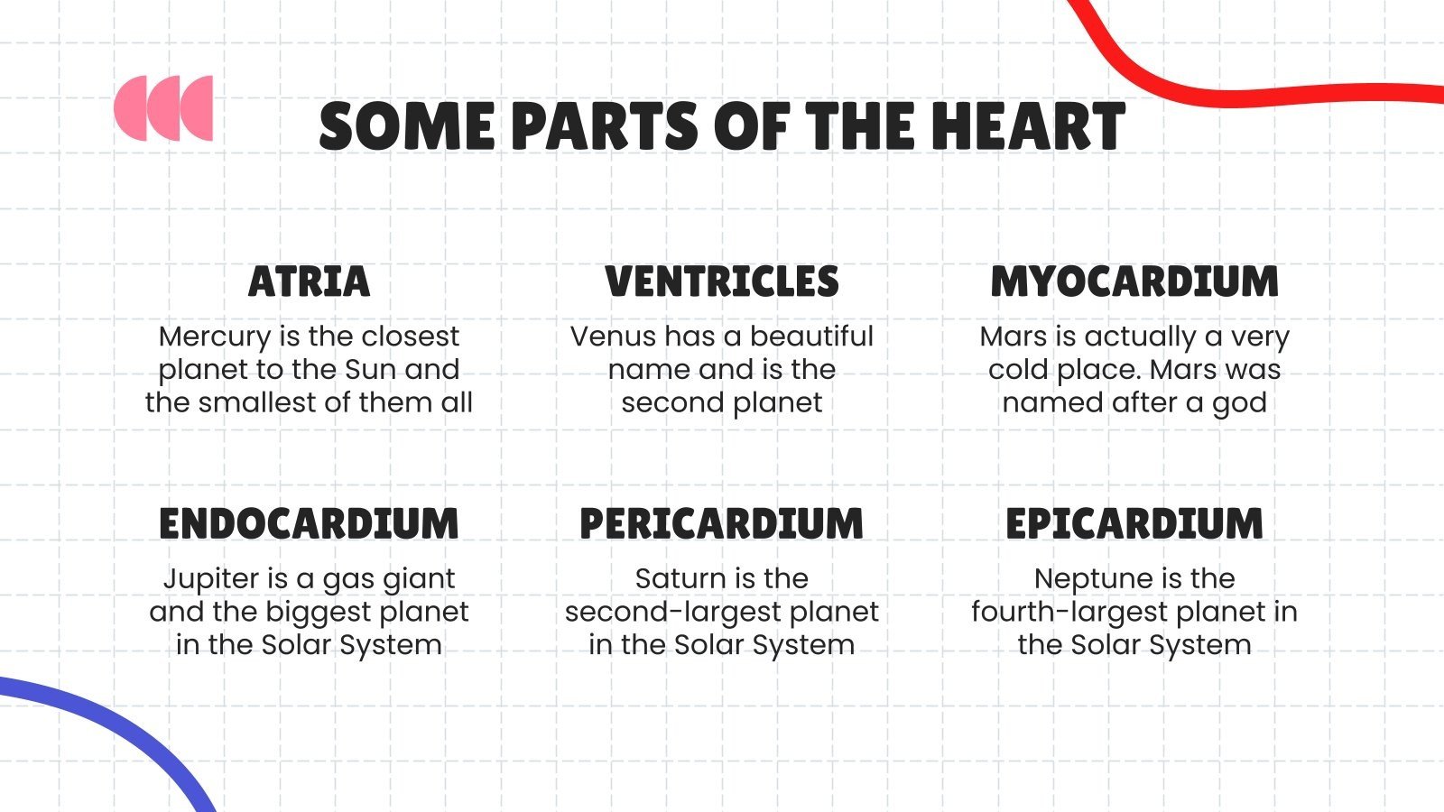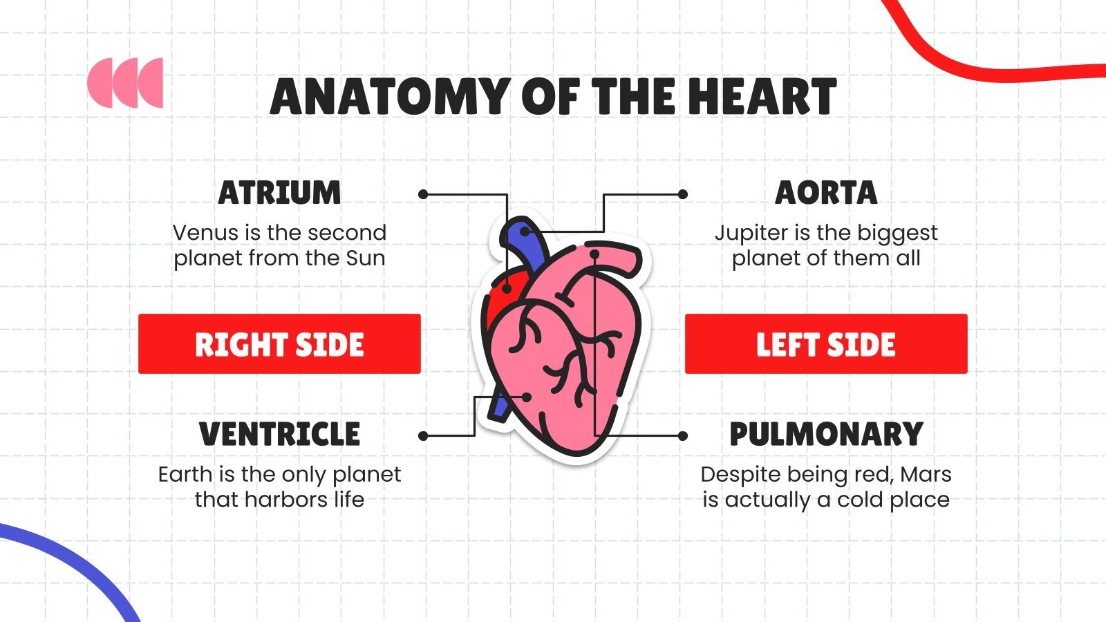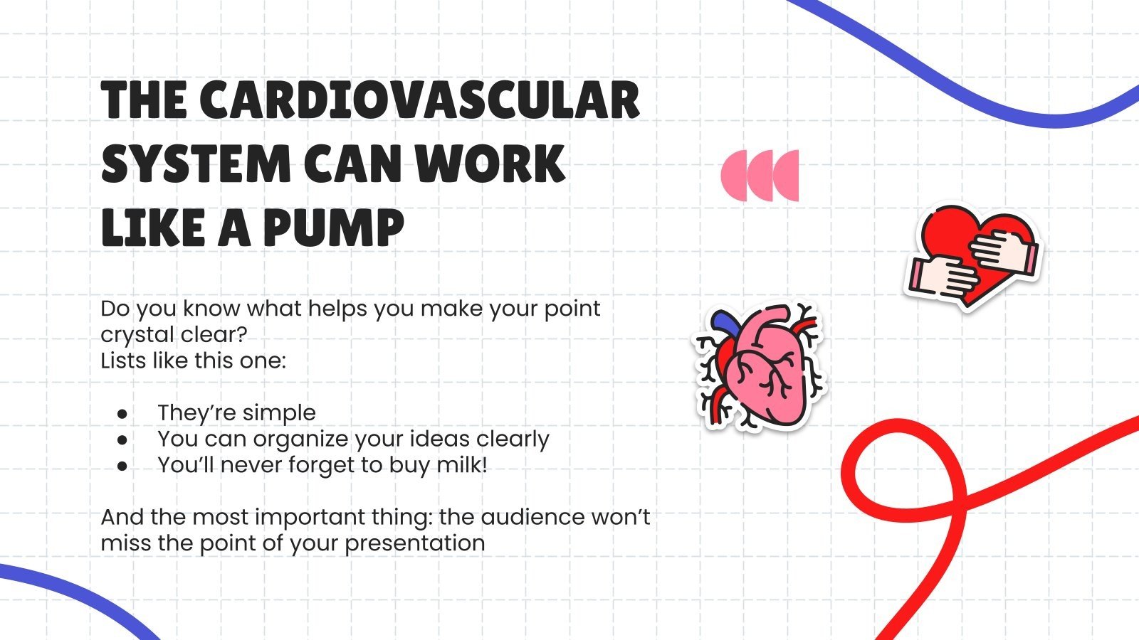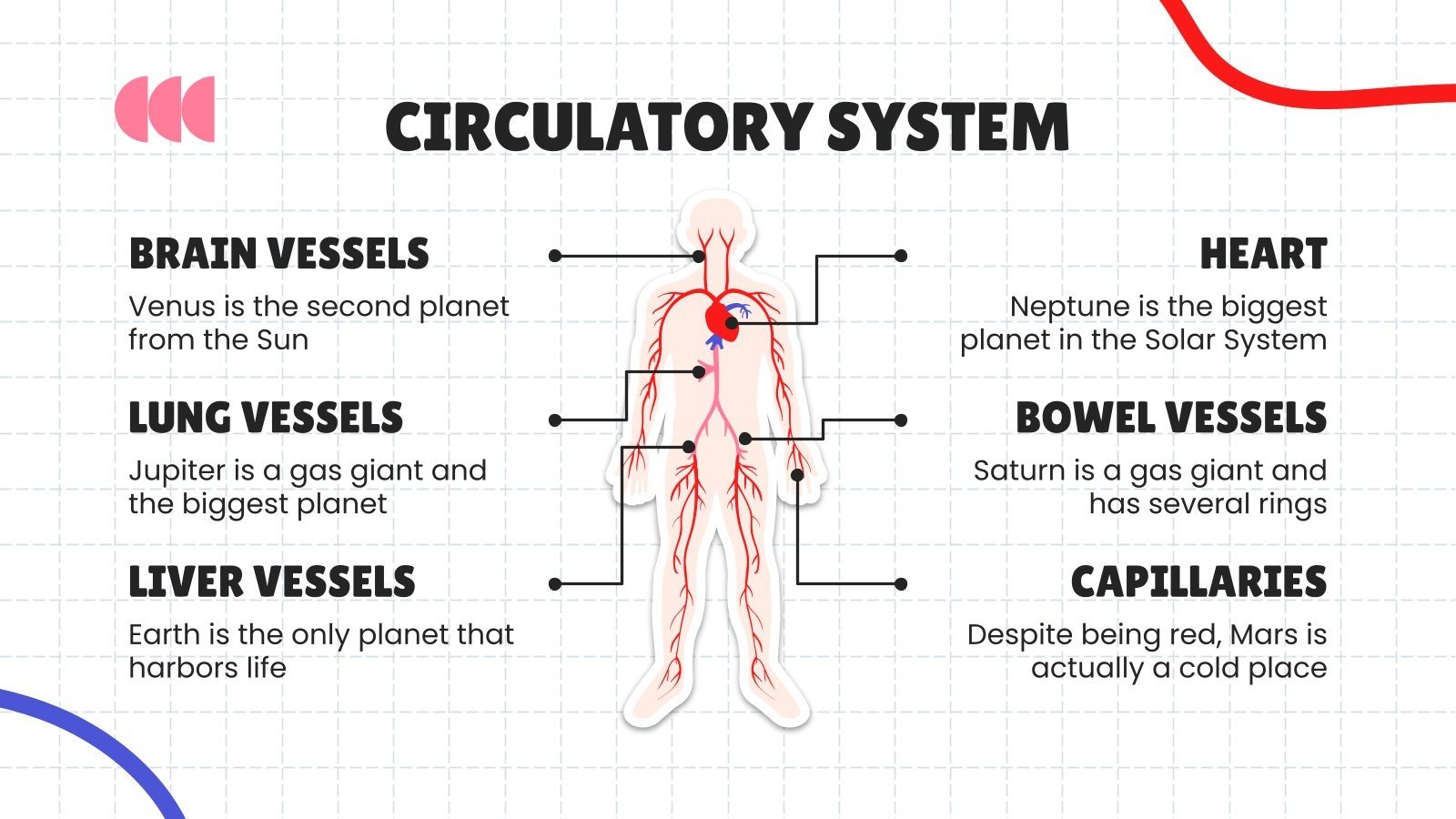 下载中学健康科学科目:心血管系统演示文稿,用于 PowerPoint 或 Google 幻灯片。如果您正在寻找一种方法来激励和吸引正在经历重大身体、社交和情感发展的学生,那么 Slidesgo 为中学设计的教育模板绝对不会出错!这个可编辑的 Google 幻灯片主题和 PowerPoint 模板及其清晰简洁的布局、刺激的配色方案和自定义选项可以适应不同的主题和教学风格,以减轻您的工作量。