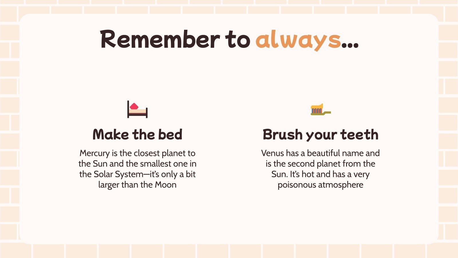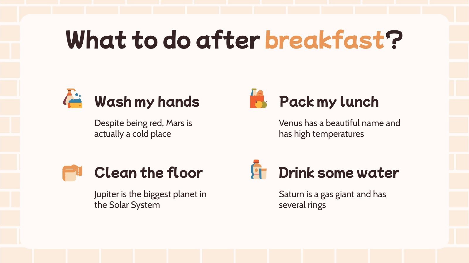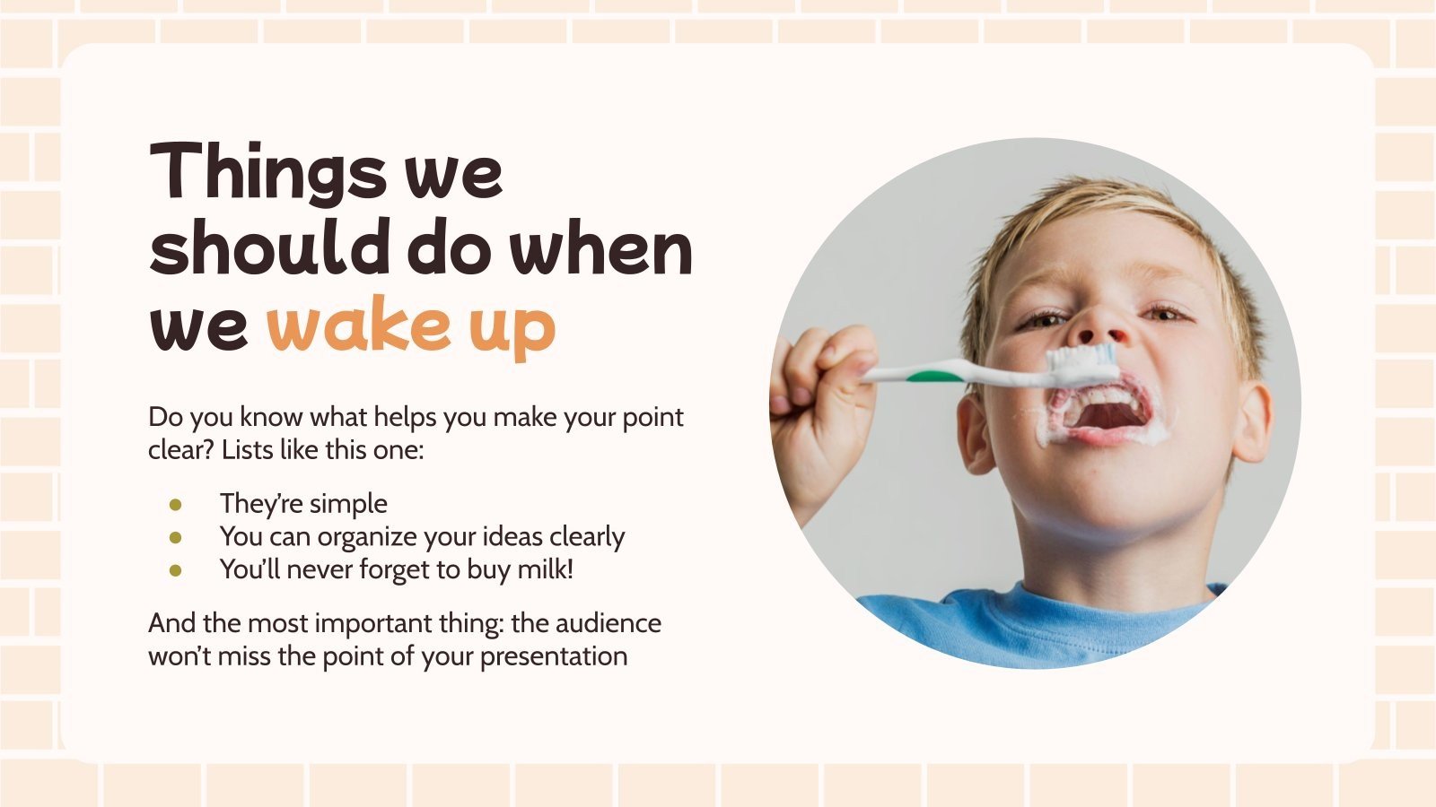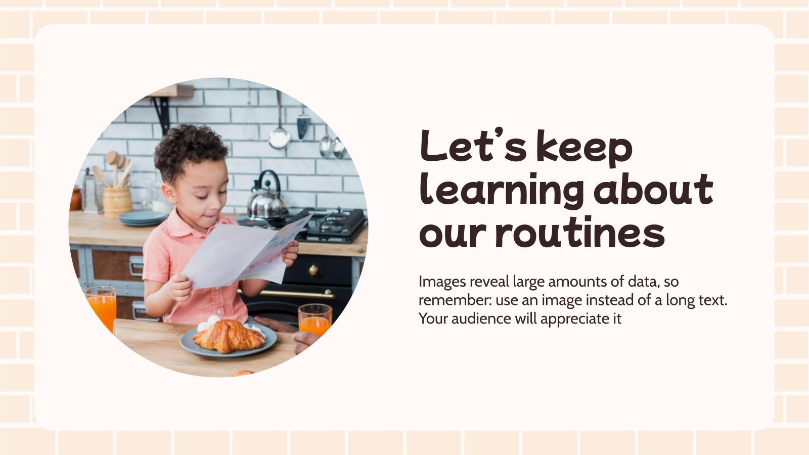 下载 PowerPoint 或 Google 幻灯片的幼儿园早间例行活动演示文稿,为最小的学生创造丰富的学习体验!这个模板充满活力和可爱,提供了学前班学生茁壮成长的视觉刺激,让你的课程更加有趣和令人兴奋——毕竟,学前班教育就是为了学习而玩!使用这个可编辑的 Google 幻灯片主题和 PowerPoint 模板,简化创建满足最年轻学习者独特要求的教育演示文稿的过程。