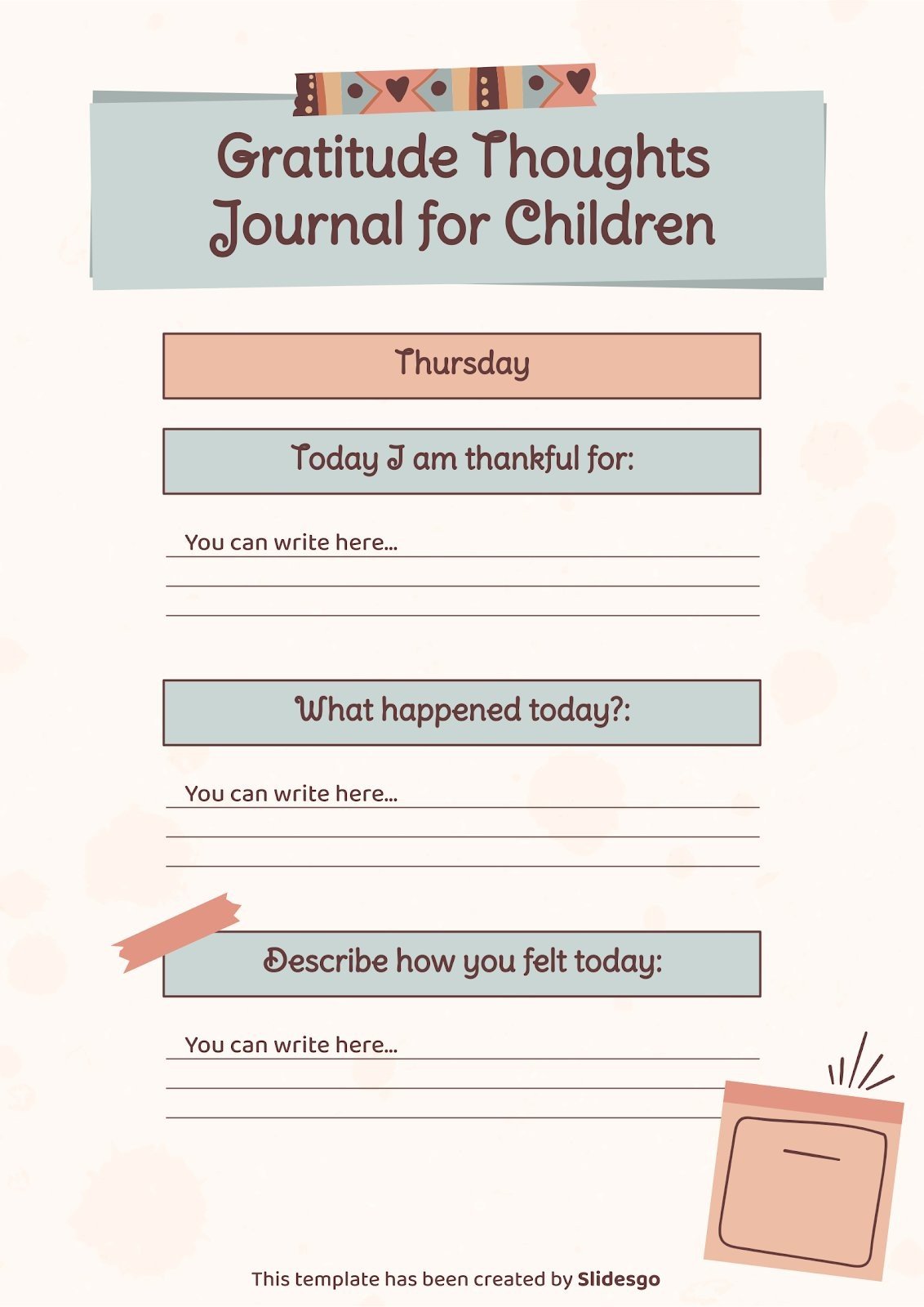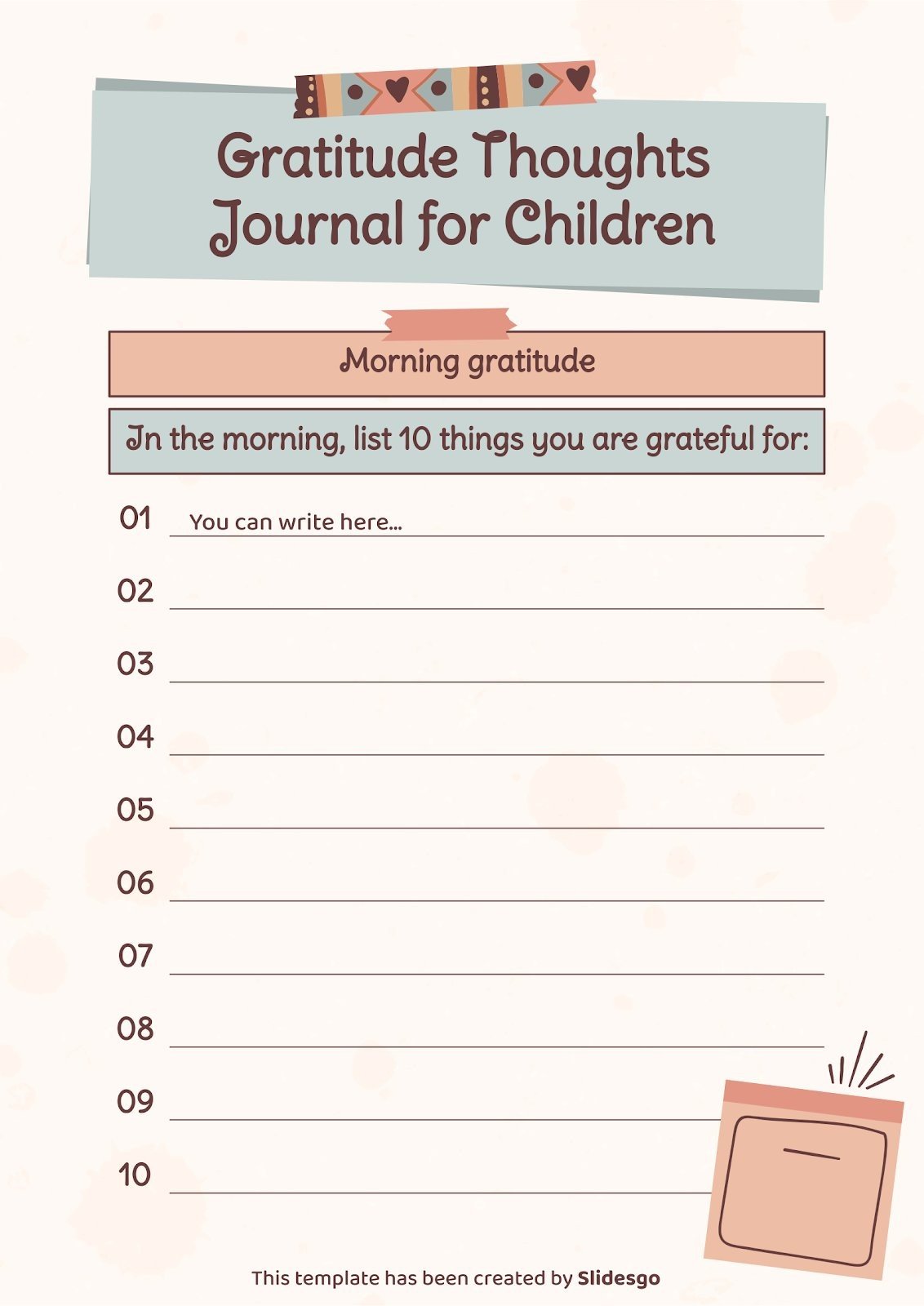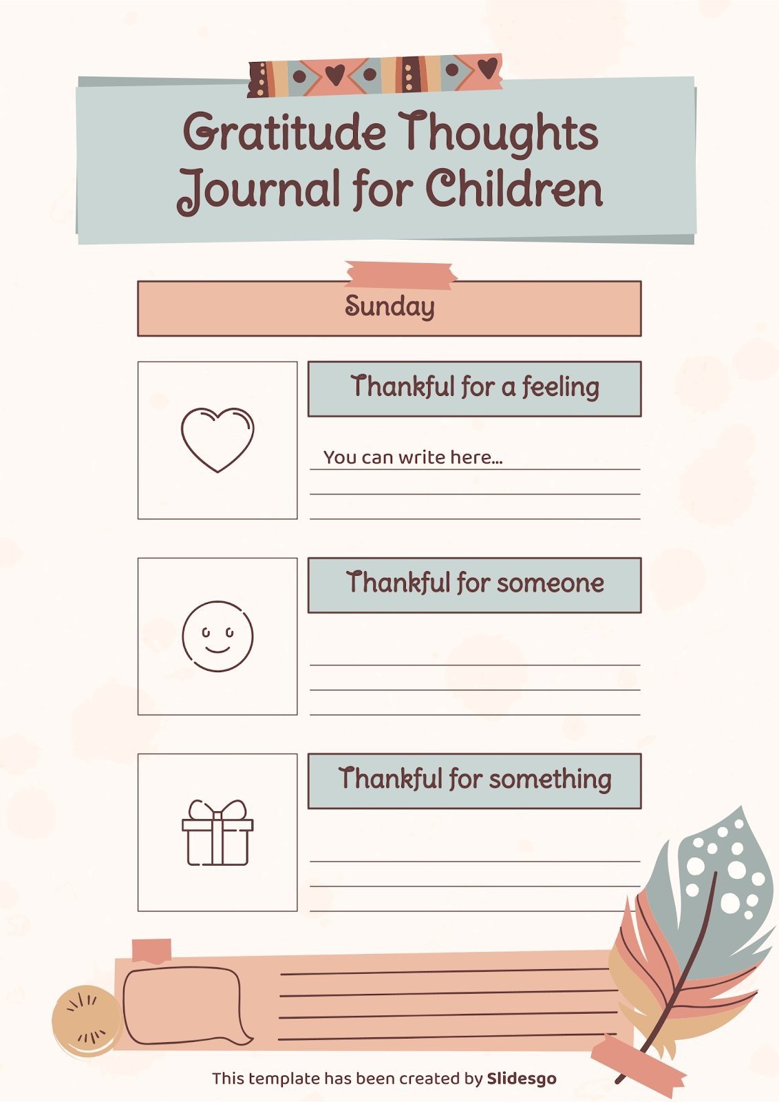“下载适用于 PowerPoint 或 Google 幻灯片的 Gratitude Thoughts Journal for Children 演示文稿,并开始用创意和原创设计给您的观众留下深刻印象。像这里这样的 Slidesgo 模板提供了通过使用不同的图形资源以清晰、简洁和直观的方式传达概念、想法或主题的可能性。你需要谈论一个特定的话题,但你不知道该怎么做?尝试使用像这样的演示文稿,100% 可定制!